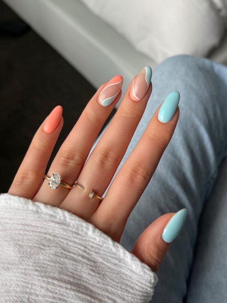 Both pink and peach are soft, feminine colors that exude elegance and sophistication. Incorporating these hues into your nail designs adds a delicate and romantic touch to your manicure, perfect for embracing the light and airy vibes of summer.