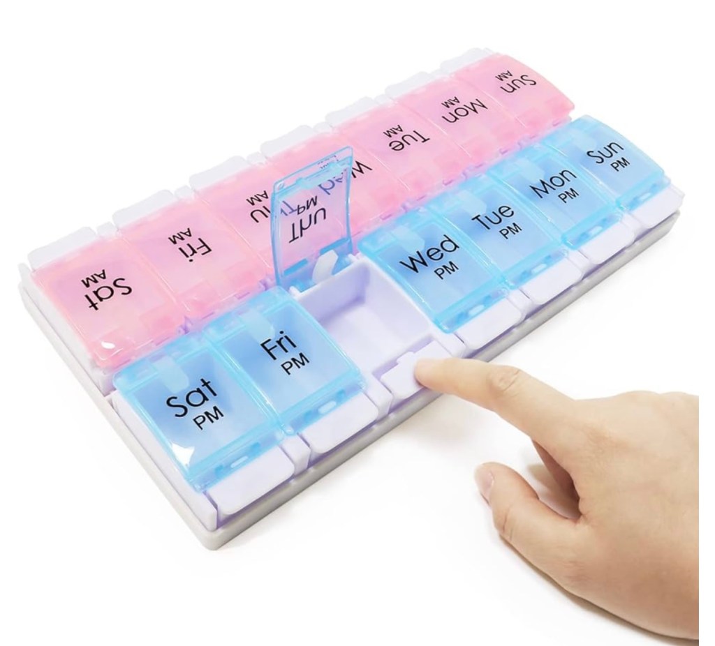 I am guilty of forgetting if I have taken my morning and afternoon pills or not, so I bought myself a pill sorter. This keeps me on track and helps me remember to take both morning and evening pills. I will even pack this in my bag if I know I’ll be away for the evening. I have attached below the pill sorter I have.