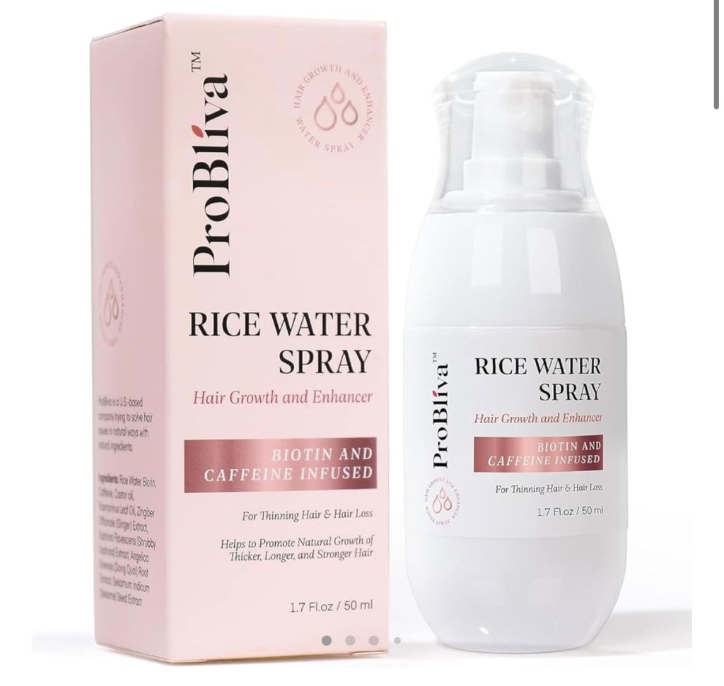 You can use the ‘Rice Water Spray With Biotin And Caffeine’ on your hair a few days a week. Spray the product on dry hair and in the spots that you notice the most hair loss. Get as close to the scalp and the root of the hair when you are spraying this. Then get your scalp massager and massage the product in for 5 mins. You can use this 3-4 days a week.