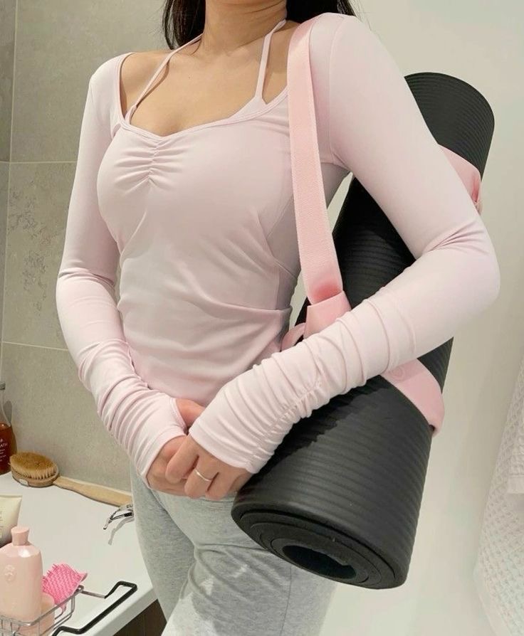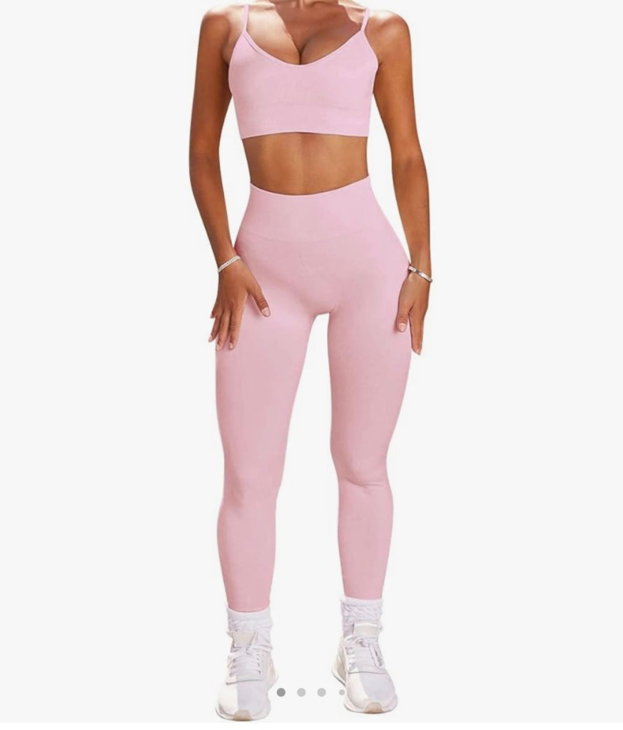 Any light pink, two piece set is both adorable and fitting to the aesthetic. Ideal for workouts or athleisure wear, a tank top and leggings set in light pink provides comfort and flexibility.