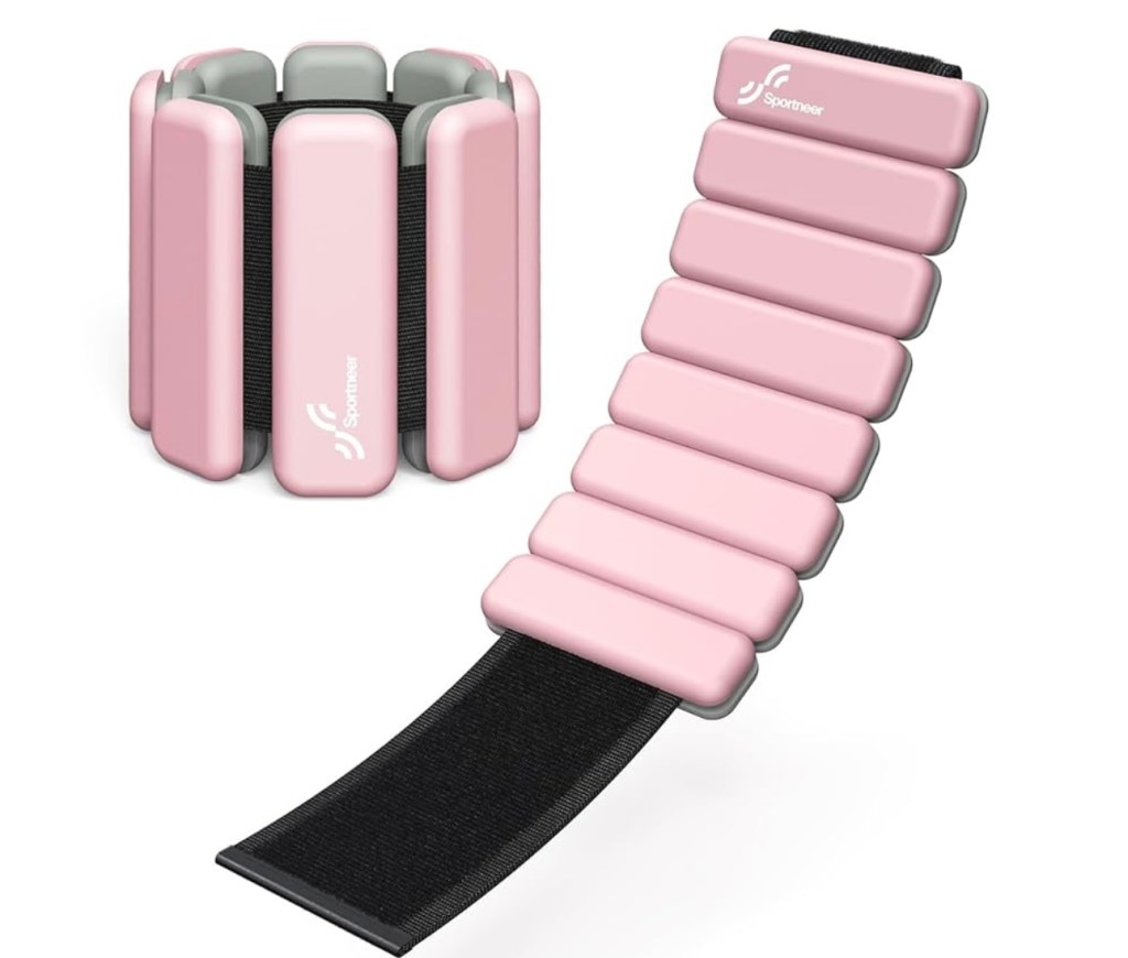 Wearable wrist and ankle weights are a great way to give yourself a bit more of a challenge during your workout! They are made of silicone for easy cleaning and you can buy them in different weight options. To purchase yours, I have them linked below.