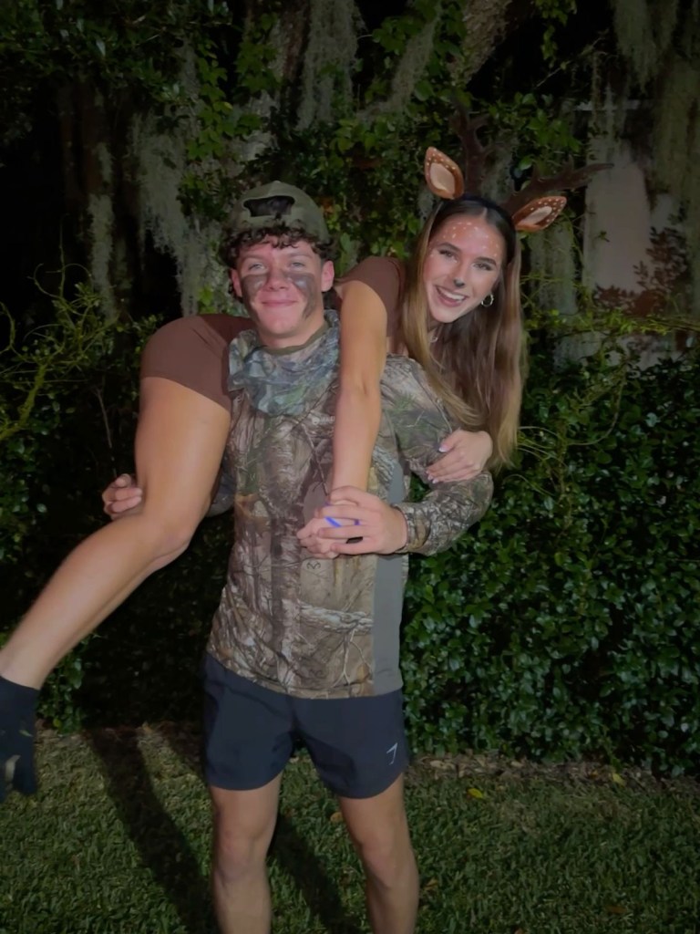 A hunter and a deer make a great couples Halloween costume because they create a classic and visually engaging contrast that plays on a traditional theme. The hunter outfit is detailed and rugged, while the deer costume adds a touch of whimsy with its antlers and soft, woodland look. This pairing allows for playful interactions and memorable photo opportunities, highlighting a fun and dynamic relationship. Additionally, the combination is easy to assemble and customize, making it a practical yet striking choice for Halloween.