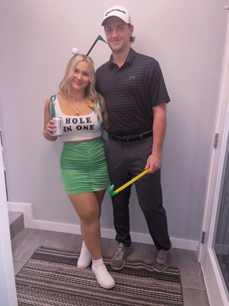 A golfer and a hole-in-one make a great couples Halloween costume because they creatively play on the excitement of achieving a perfect shot in golf. The golfer costume is classic and recognizable, while the hole-in-one outfit can be both humorous and visually striking, often featuring a large “hole” with a flag or other golf-themed details. This pairing allows for interactive and engaging fun, showcasing both the sport’s elegance and its thrilling moments. Additionally, it’s a unique and playful choice that stands out in a sea of traditional costumes, making your Halloween experience memorable.