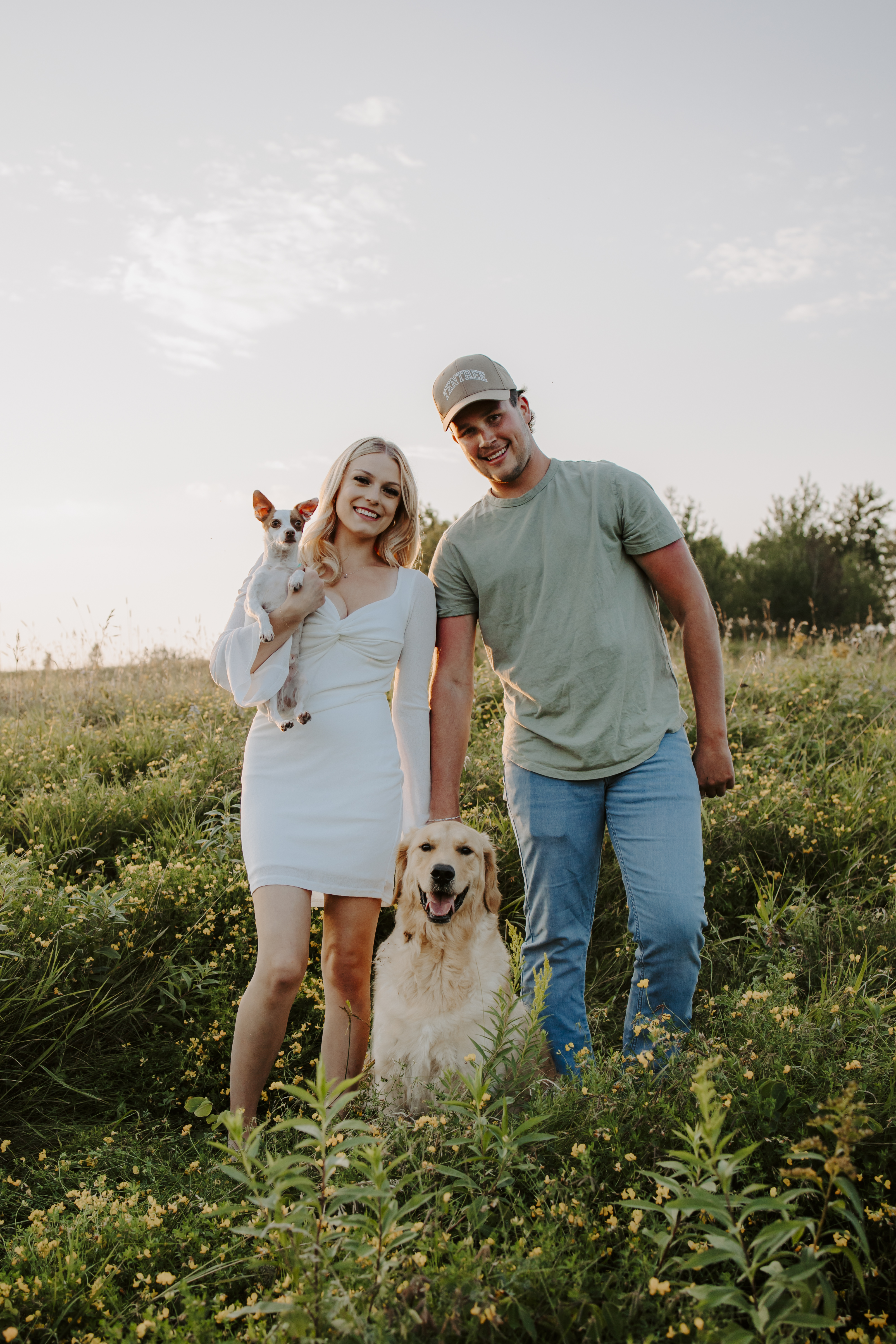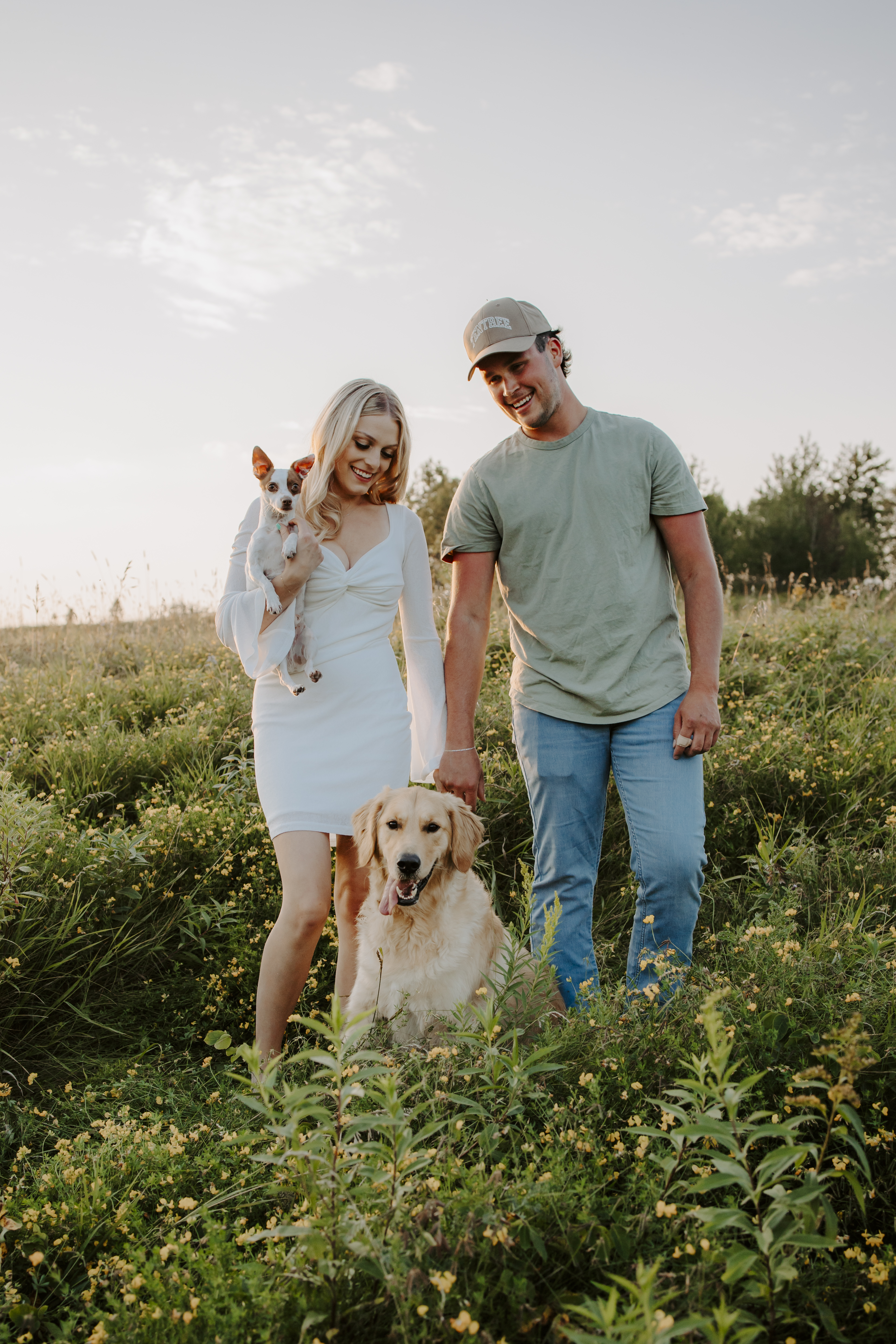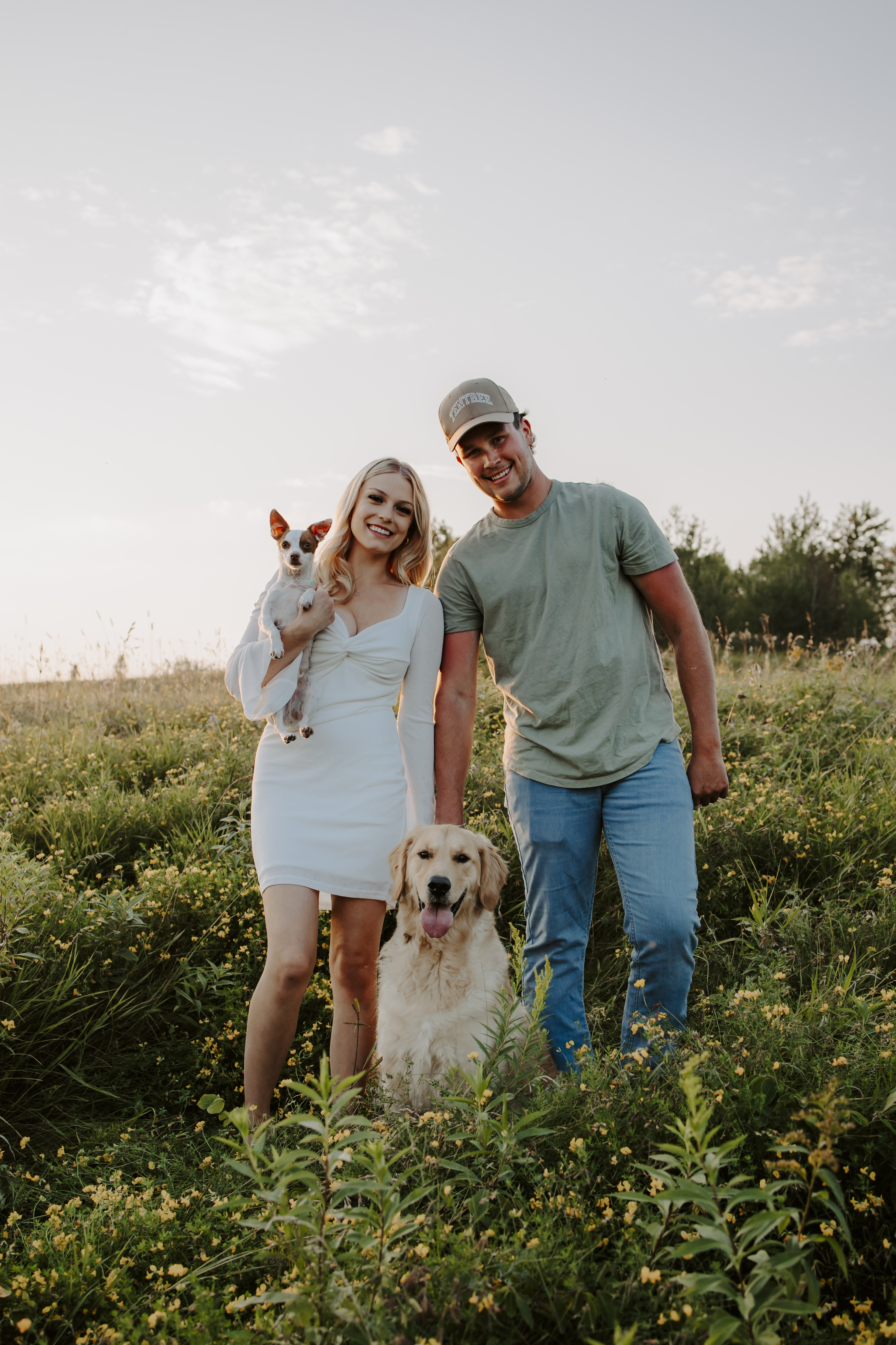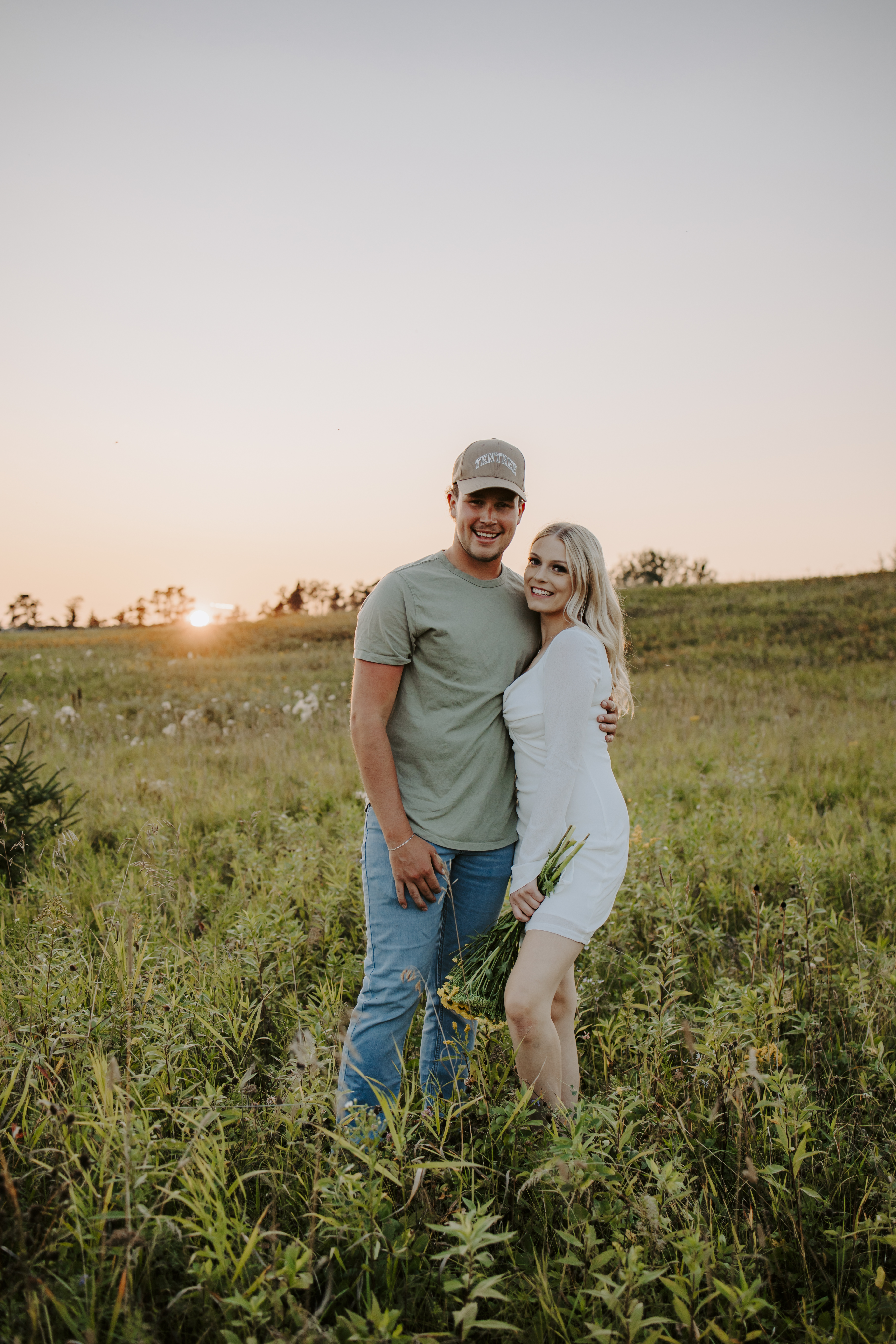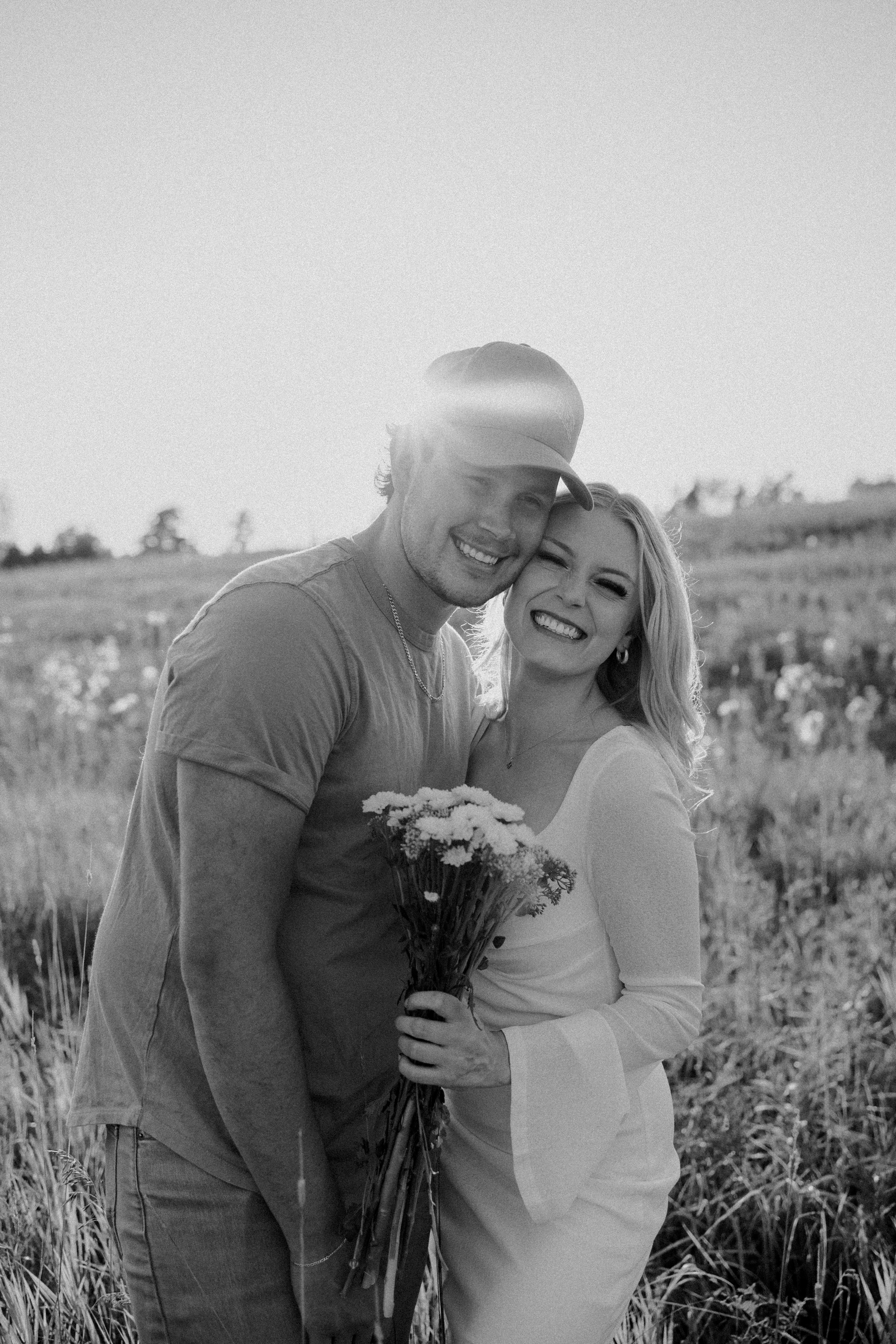 My boyfriend and I get yearly photos done and this year, I wanted our photoshoot to take place during the end of summer with our fur babies. I had chose a felid for the location of our shoot. The poses below would work for any season and in almost any location. We had brought two props with us-a $10.00 bunch of flowers and a $30.00 blanket we already had bought from Amazon. Depending the time of year/the location you’re planning on doing your shoot, have fun exploring different props that you can incorporate into your special shoot!