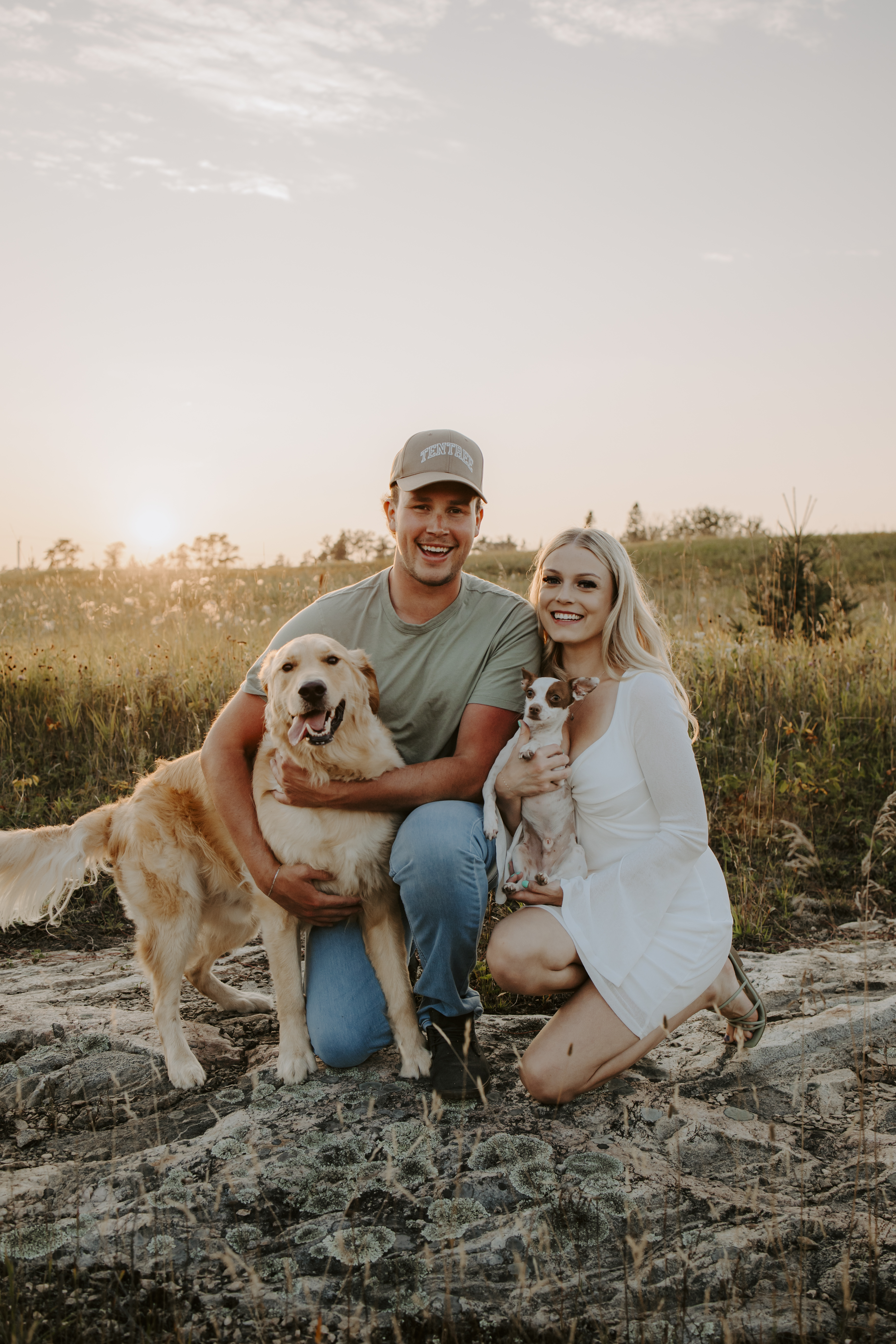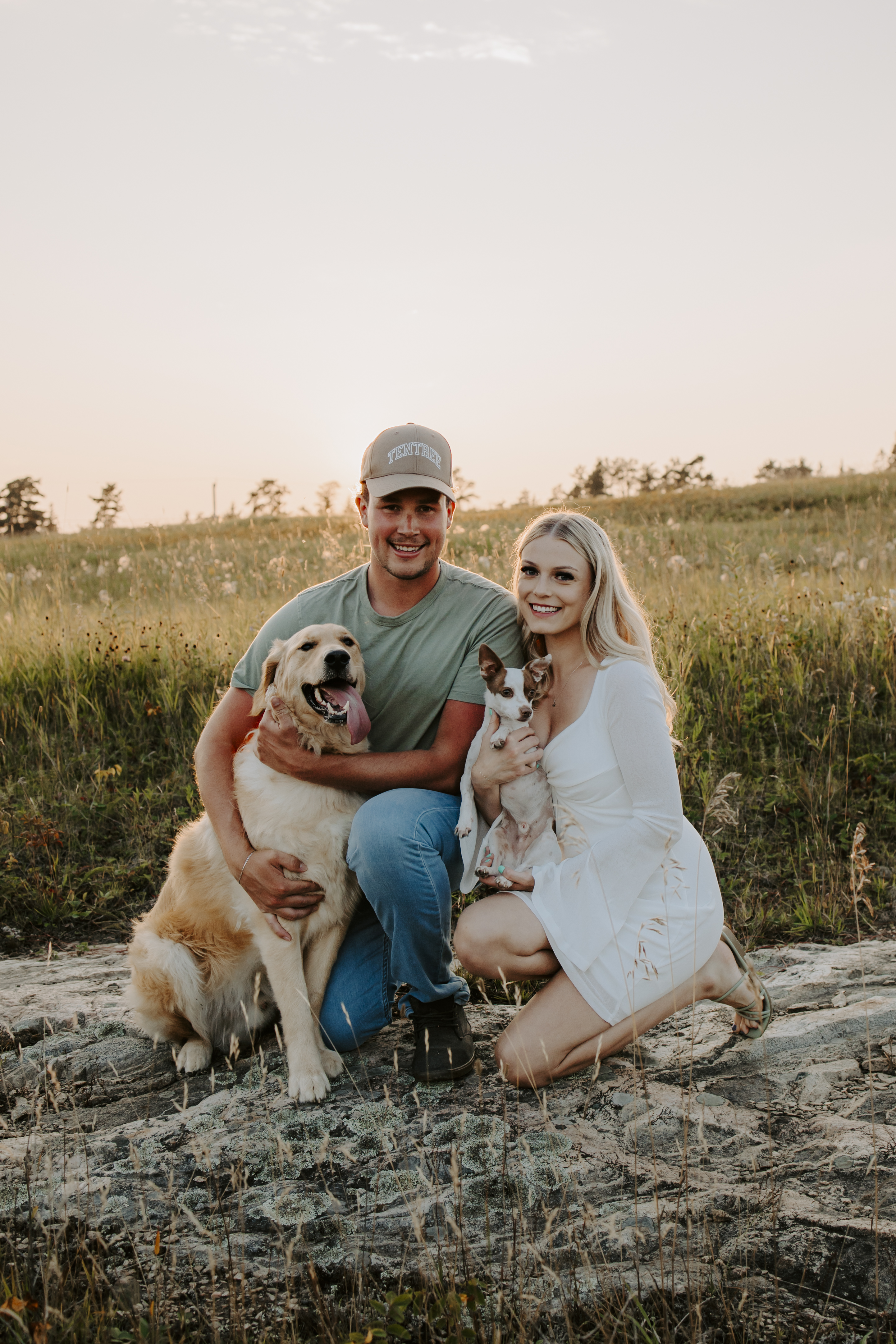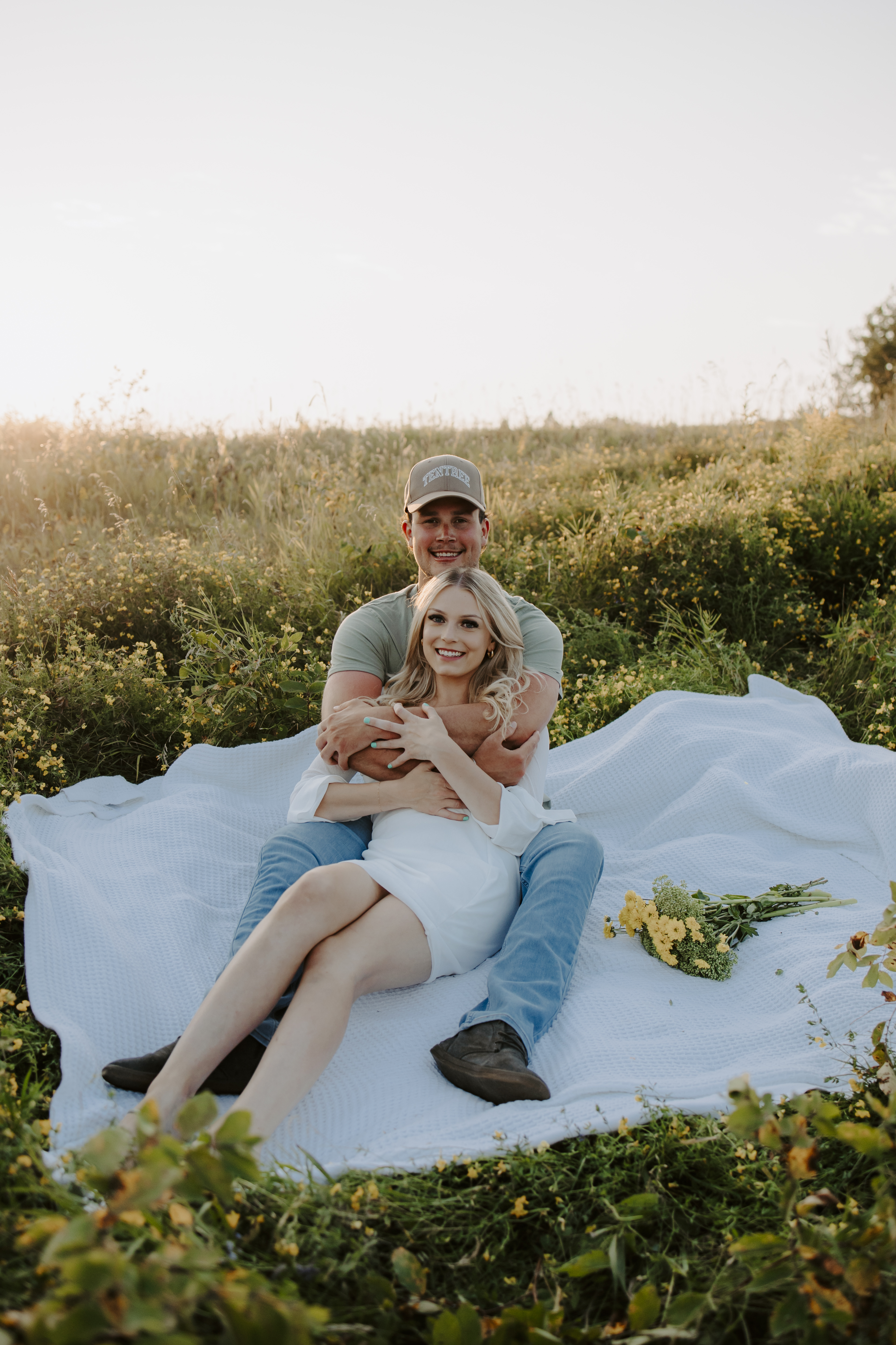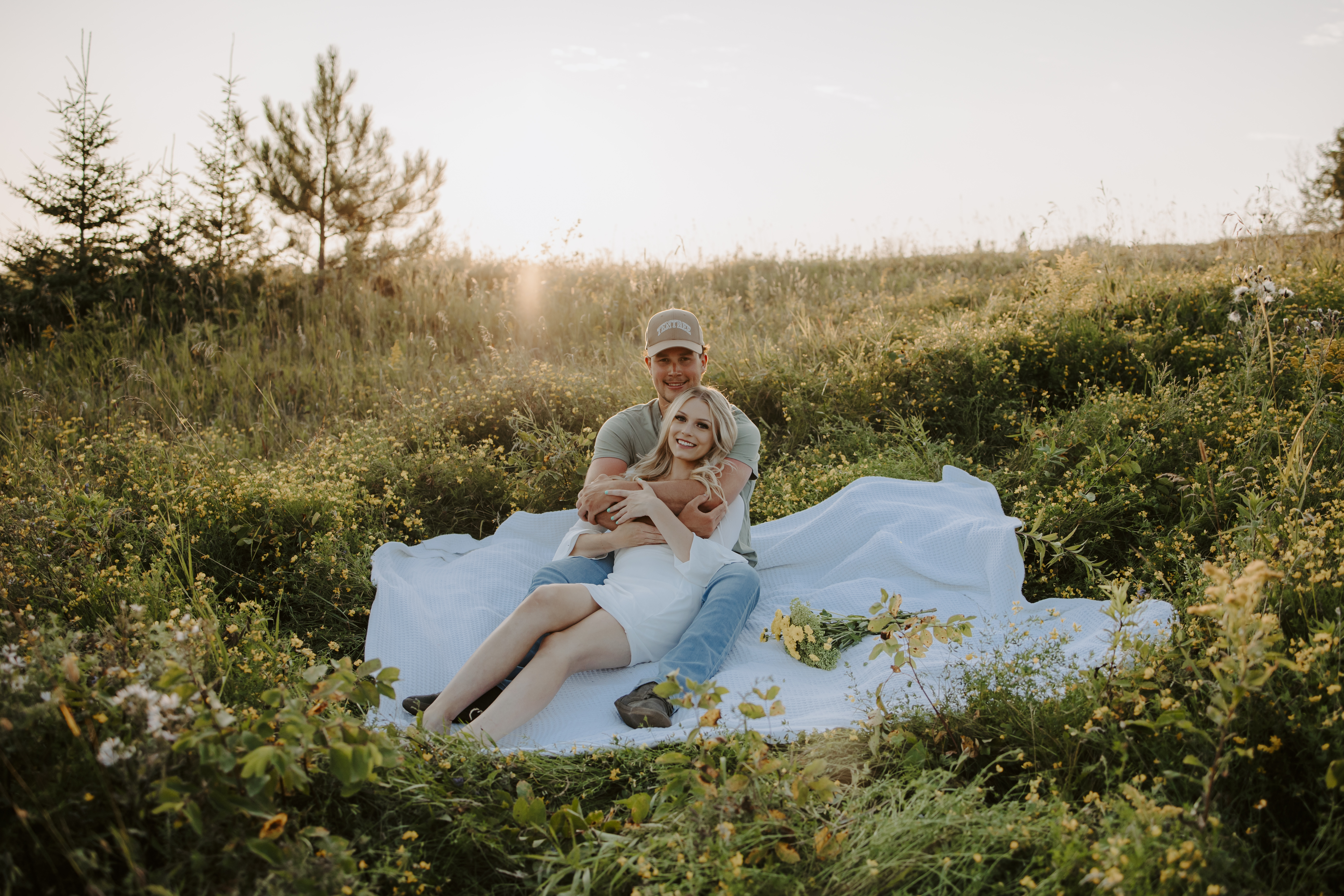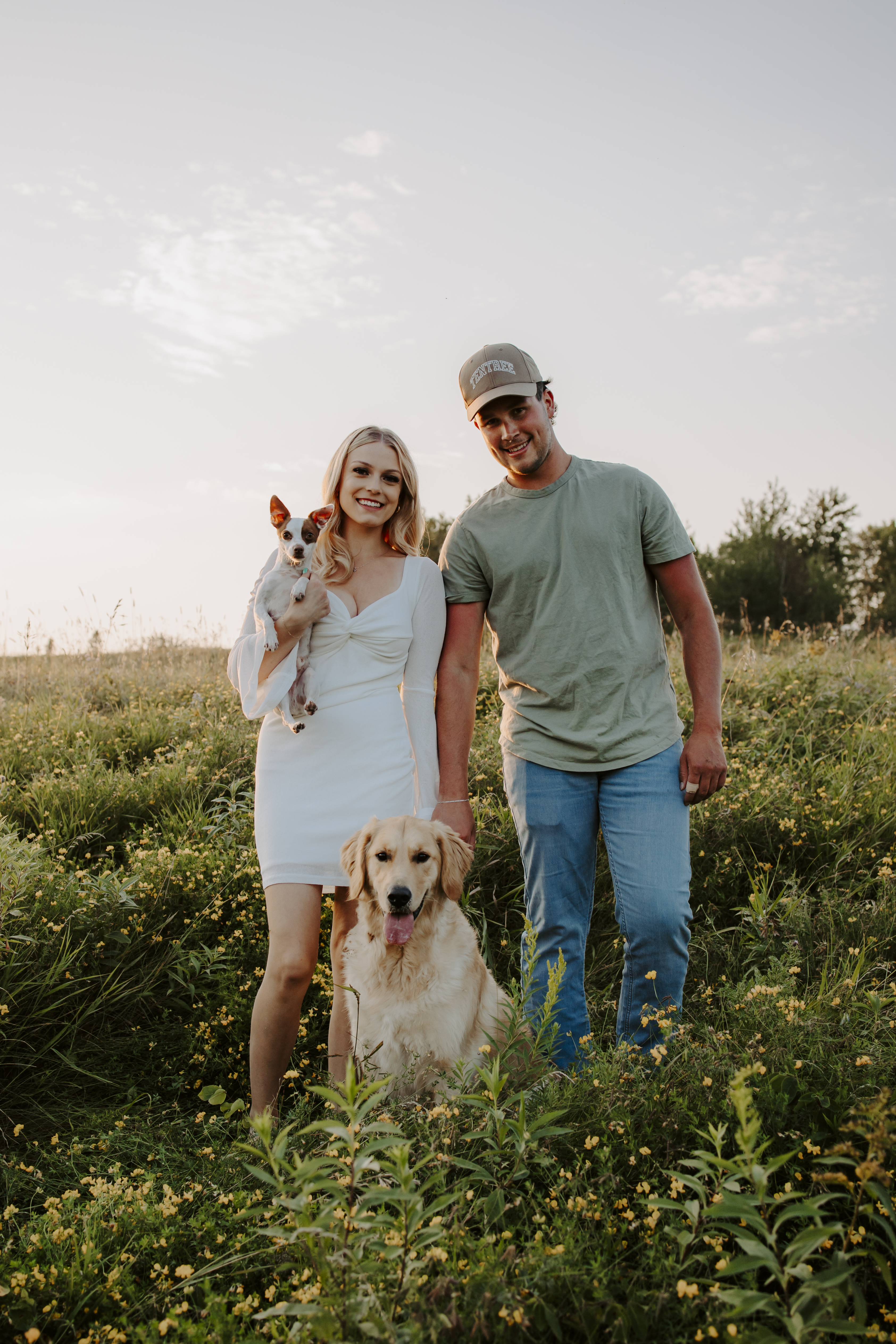 My boyfriend and I get yearly photos done and this year, I wanted our photoshoot to take place during the end of summer with our fur babies. I had chose a felid for the location of our shoot. The poses below would work for any season and in almost any location. We had brought two props with us-a $10.00 bunch of flowers and a $30.00 blanket we already had bought from Amazon. Depending the time of year/the location you’re planning on doing your shoot, have fun exploring different props that you can incorporate into your special shoot!