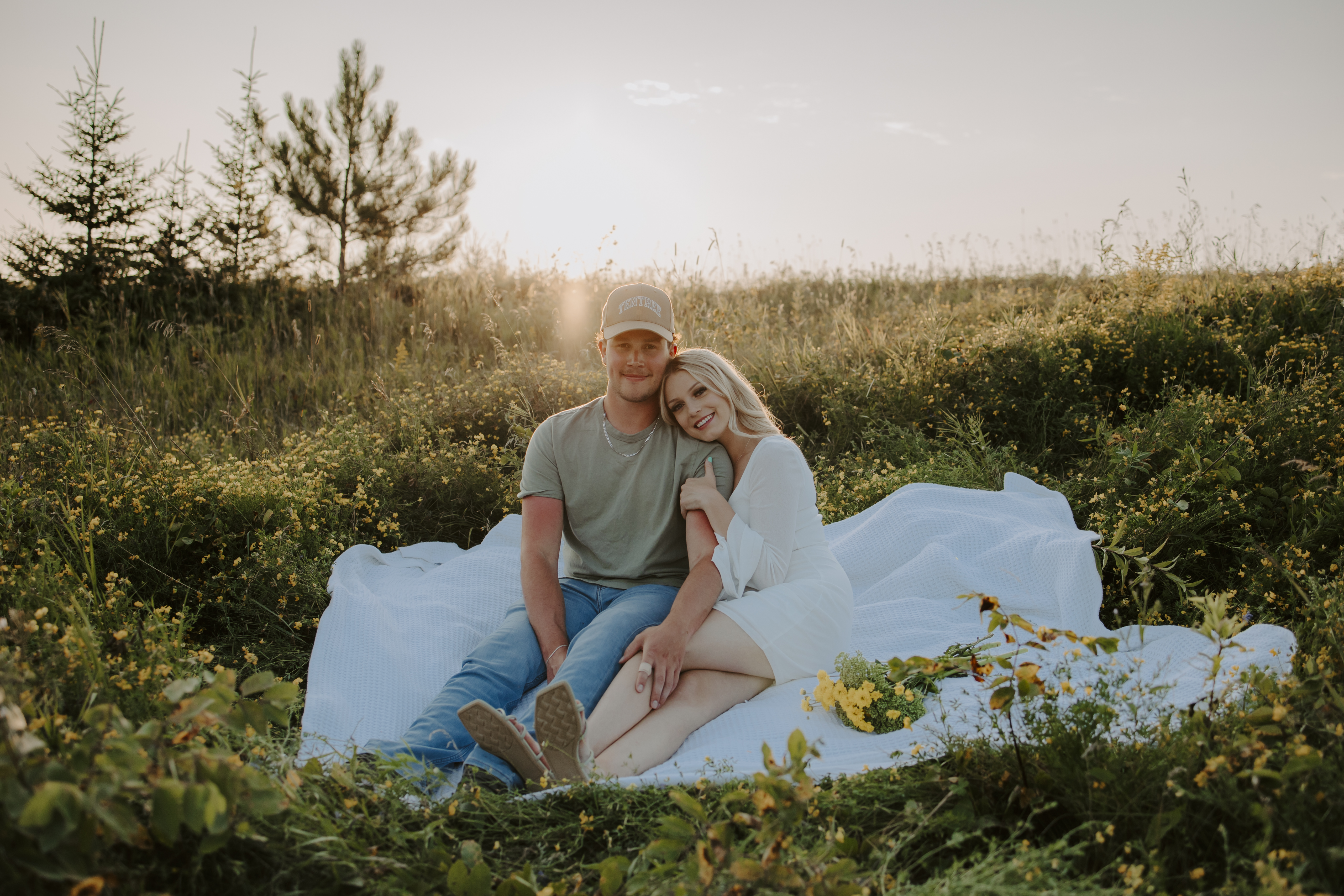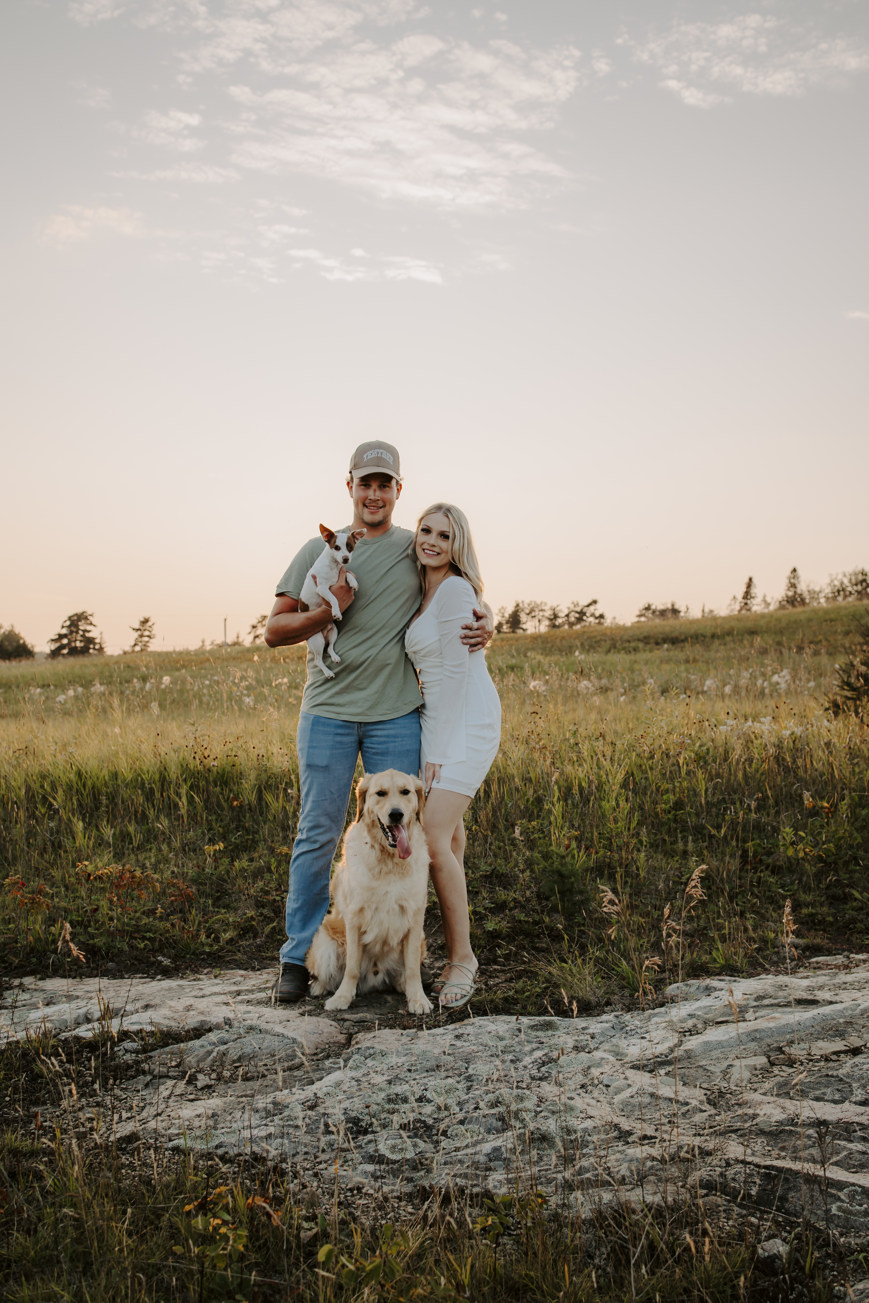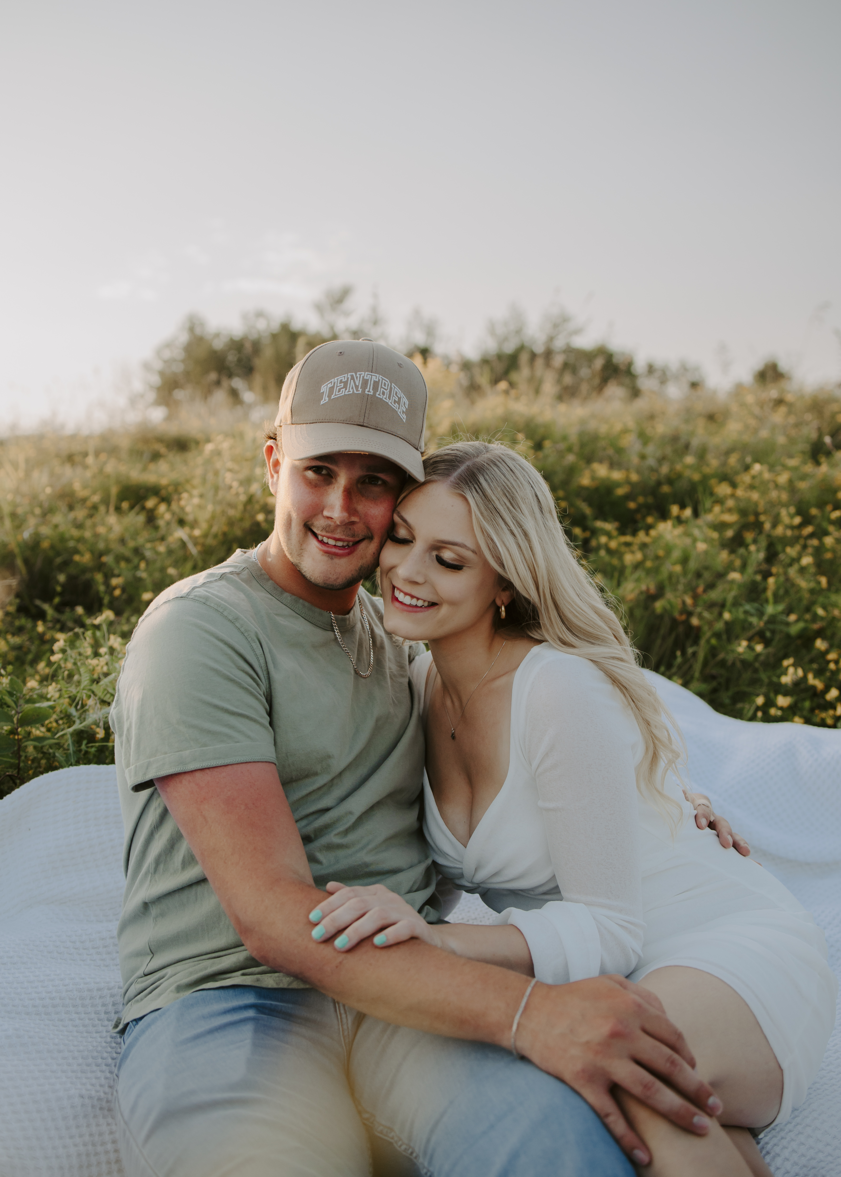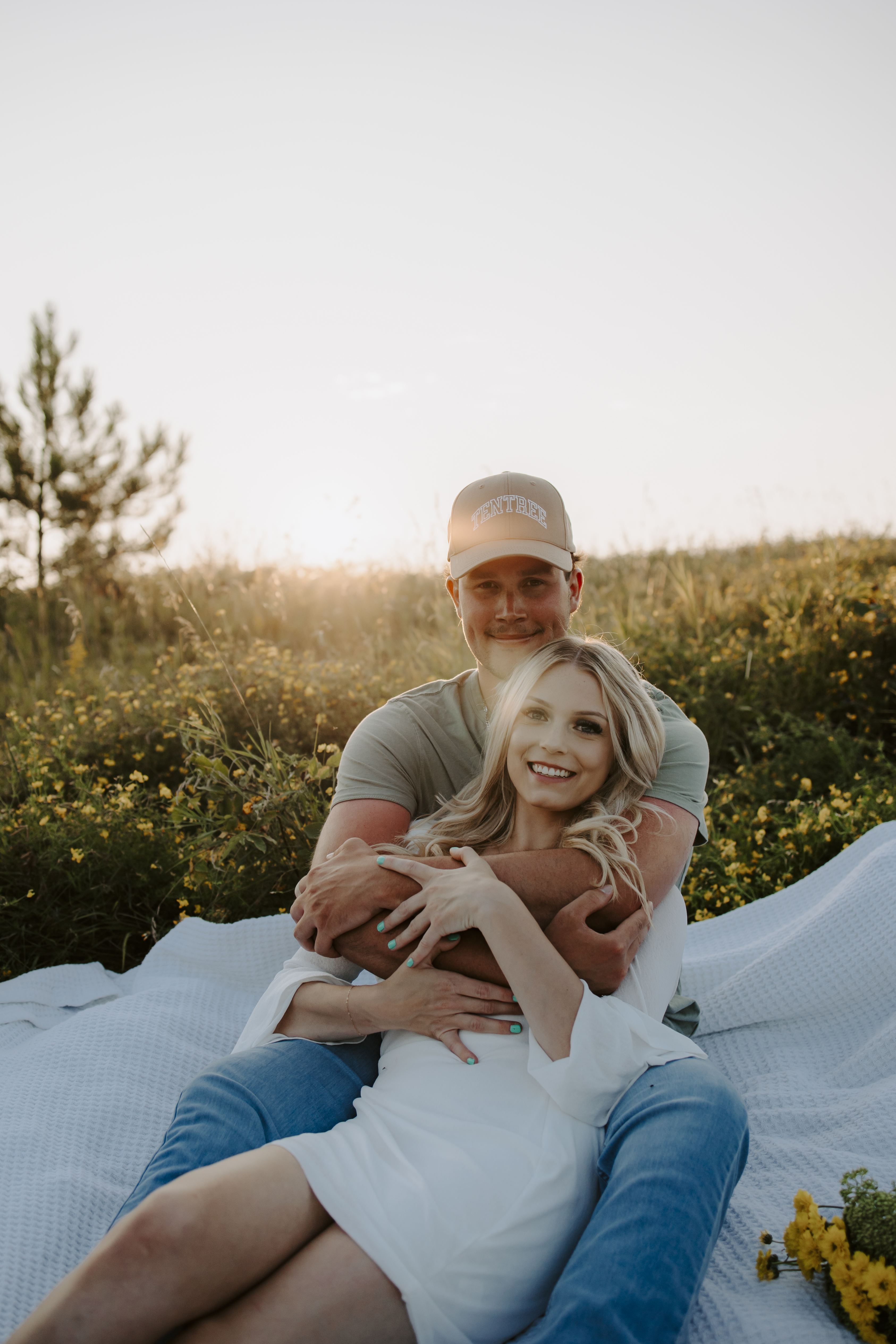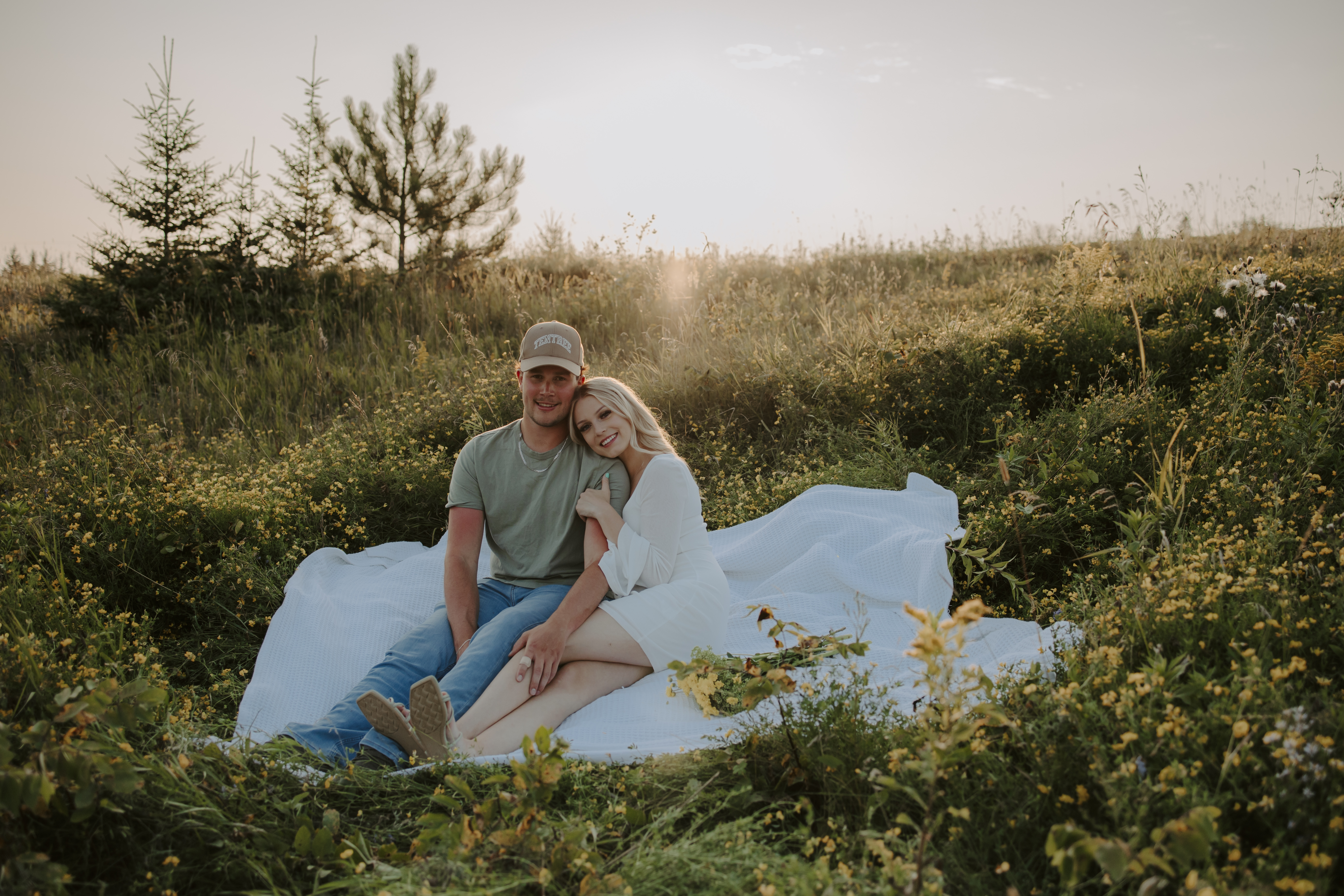 My boyfriend and I get yearly photos done and this year, I wanted our photoshoot to take place during the end of summer with our fur babies. I had chose a felid for the location of our shoot. The poses below would work for any season and in almost any location. We had brought two props with us-a $10.00 bunch of flowers and a $30.00 blanket we already had bought from Amazon. Depending the time of year/the location you’re planning on doing your shoot, have fun exploring different props that you can incorporate into your special shoot!