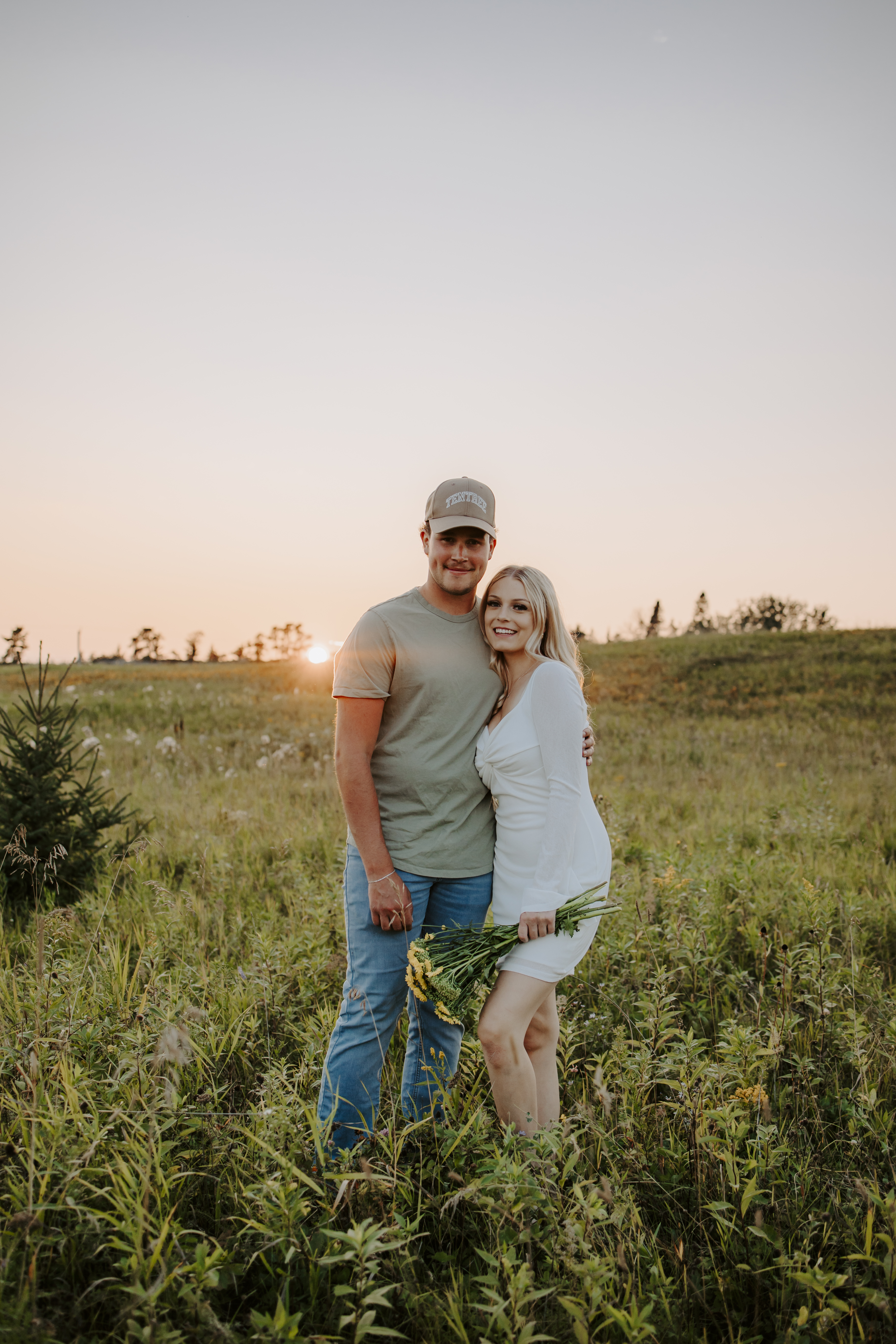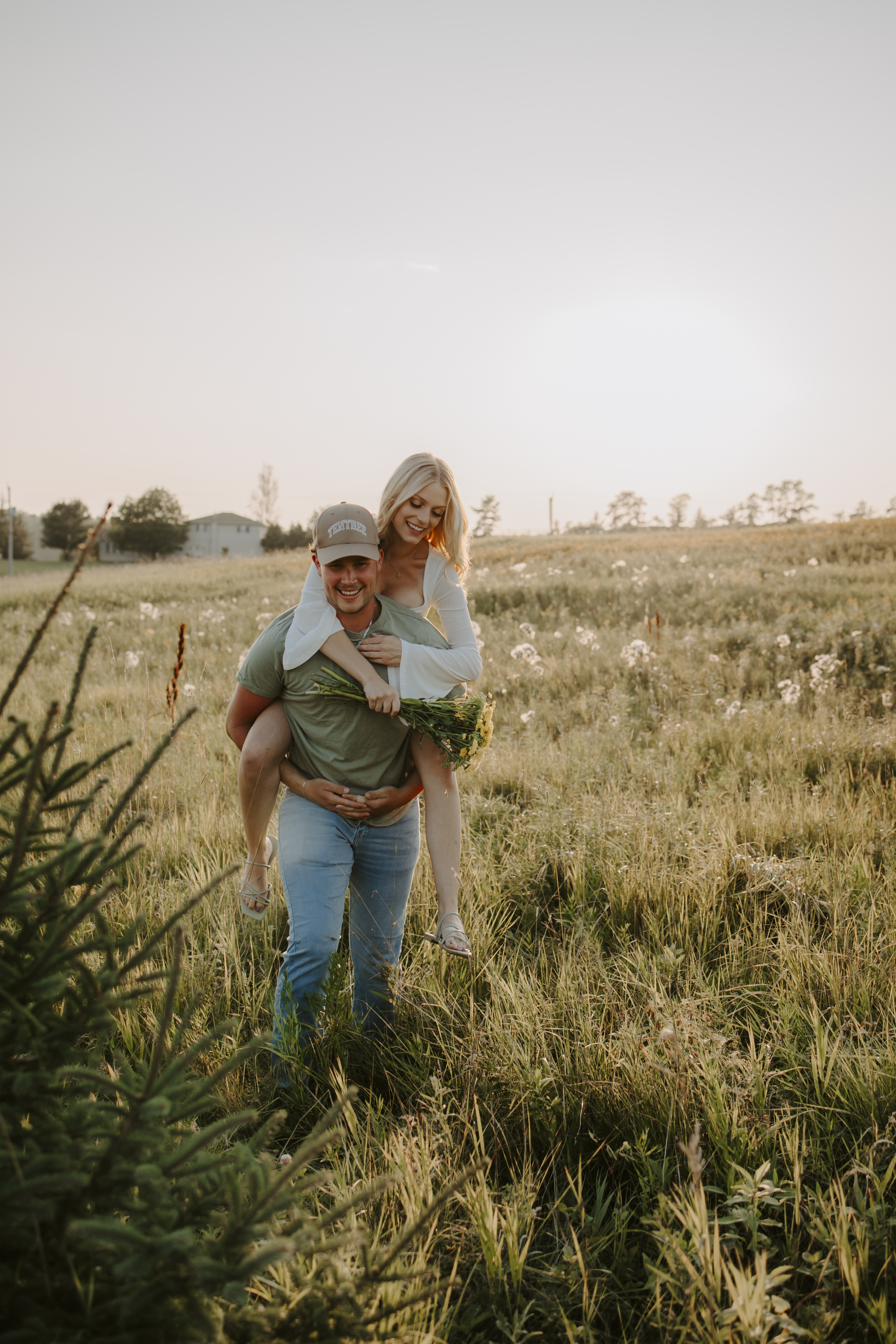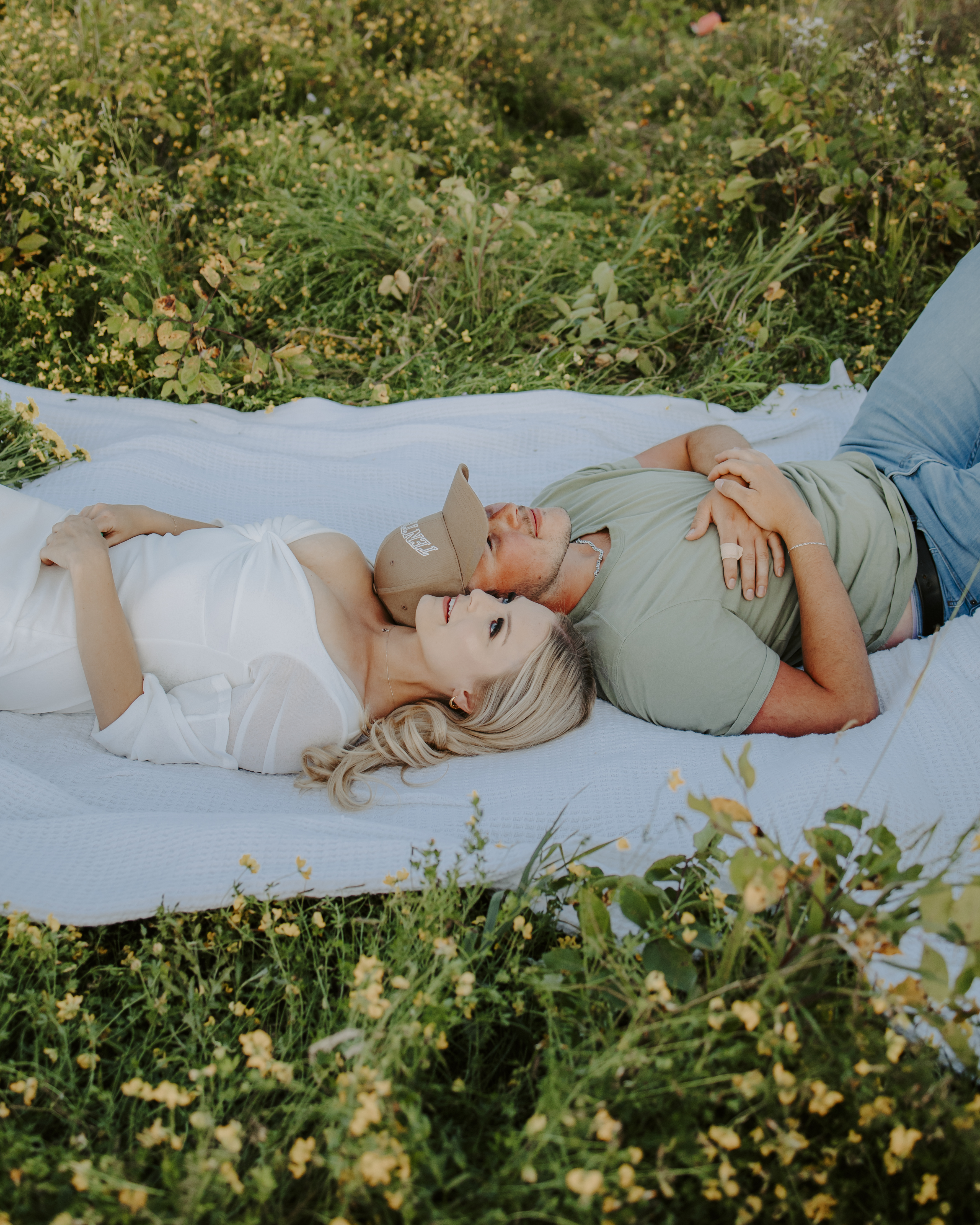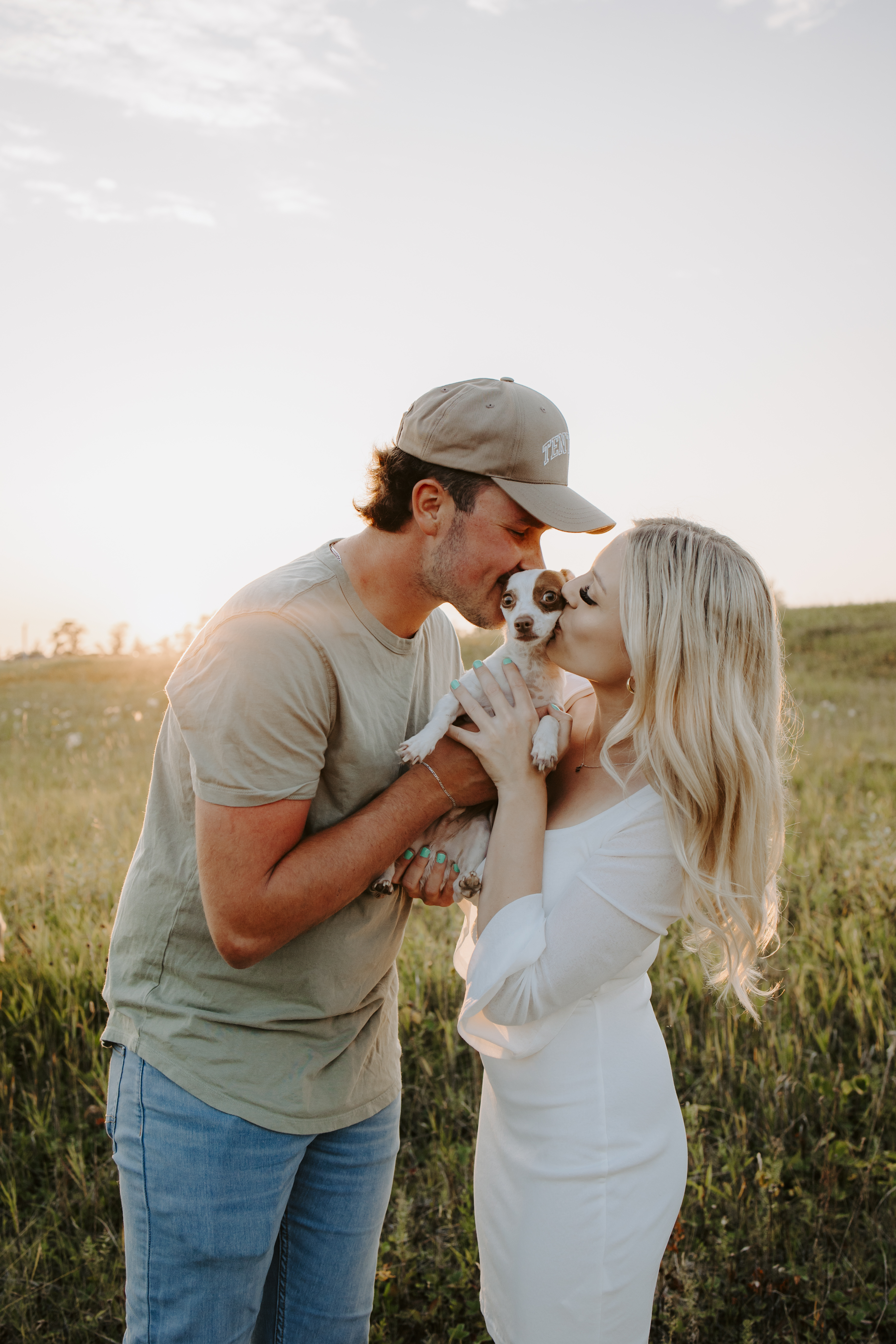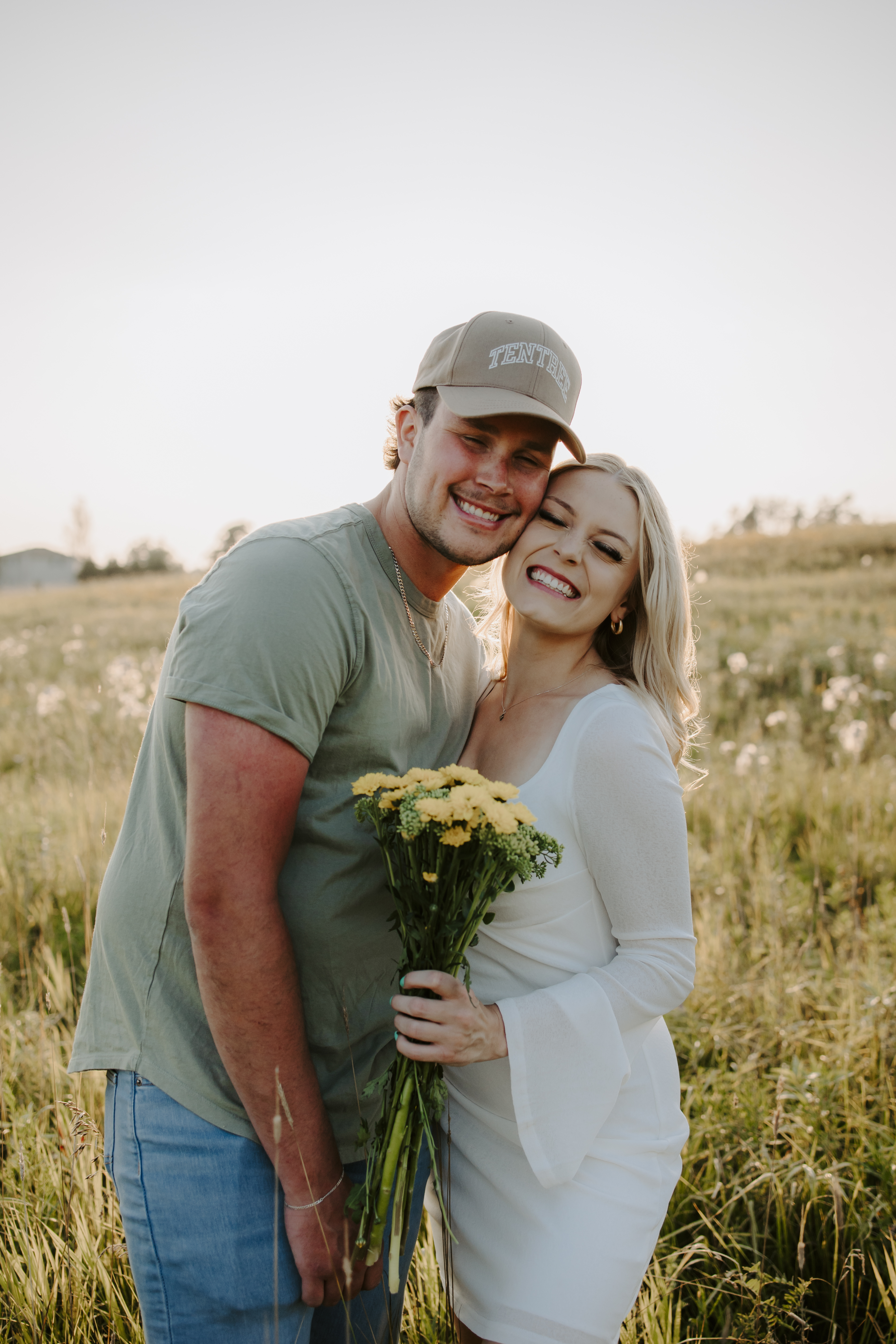 My boyfriend and I get yearly photos done and this year, I wanted our photoshoot to take place during the end of summer with our fur babies. I had chose a felid for the location of our shoot. The poses below would work for any season and in almost any location. We had brought two props with us-a $10.00 bunch of flowers and a $30.00 blanket we already had bought from Amazon. Depending the time of year/the location you’re planning on doing your shoot, have fun exploring different props that you can incorporate into your special shoot!
