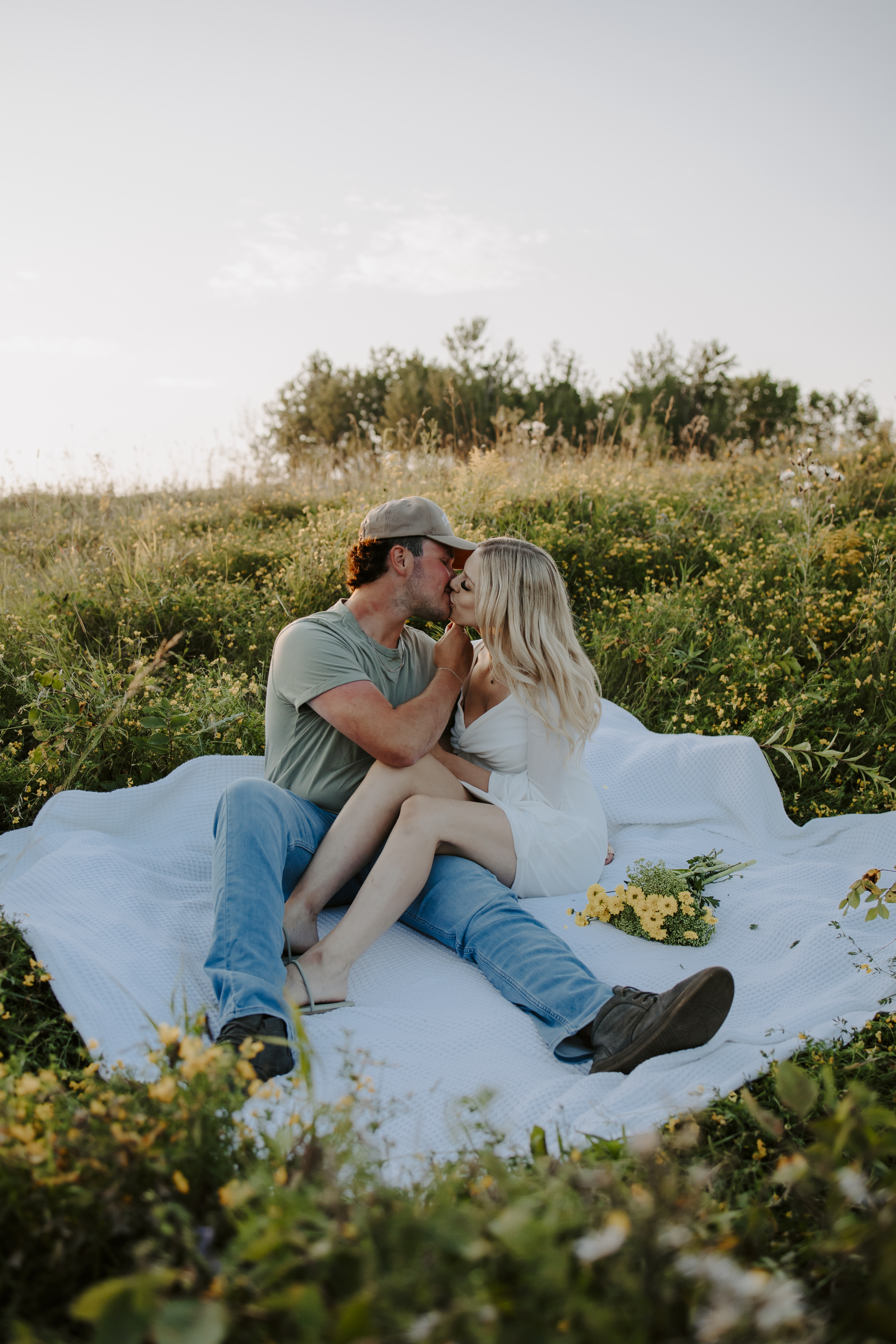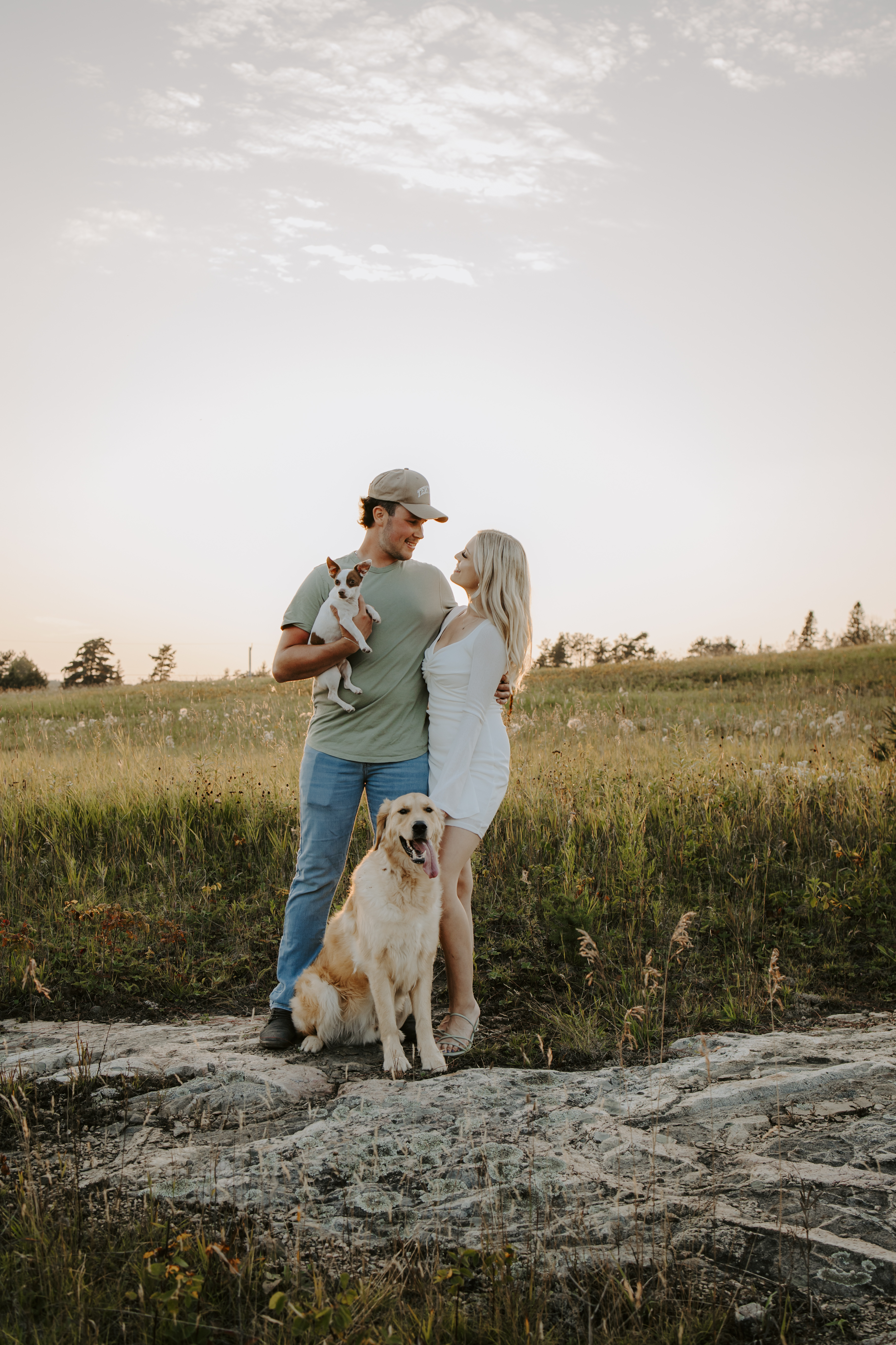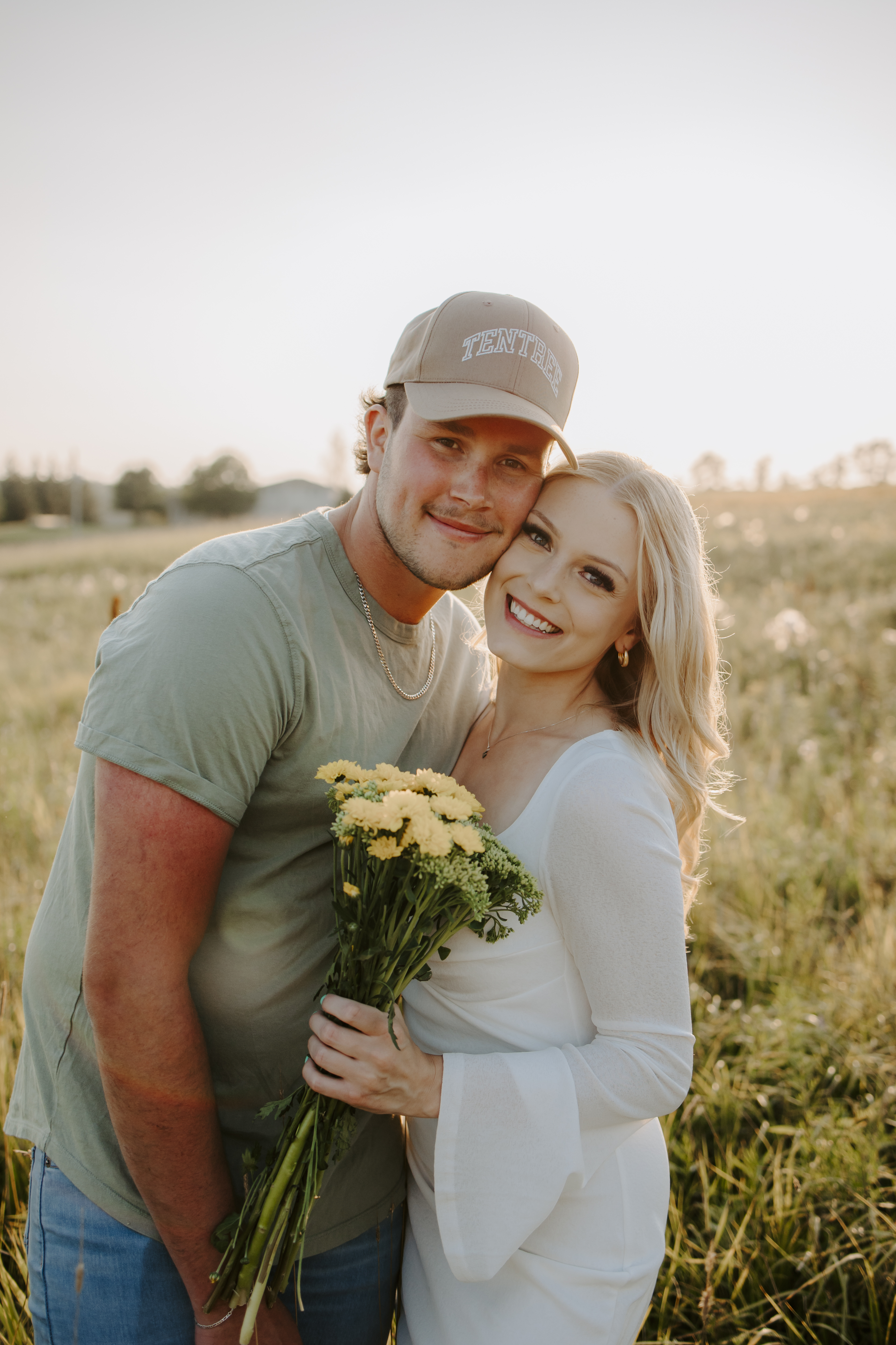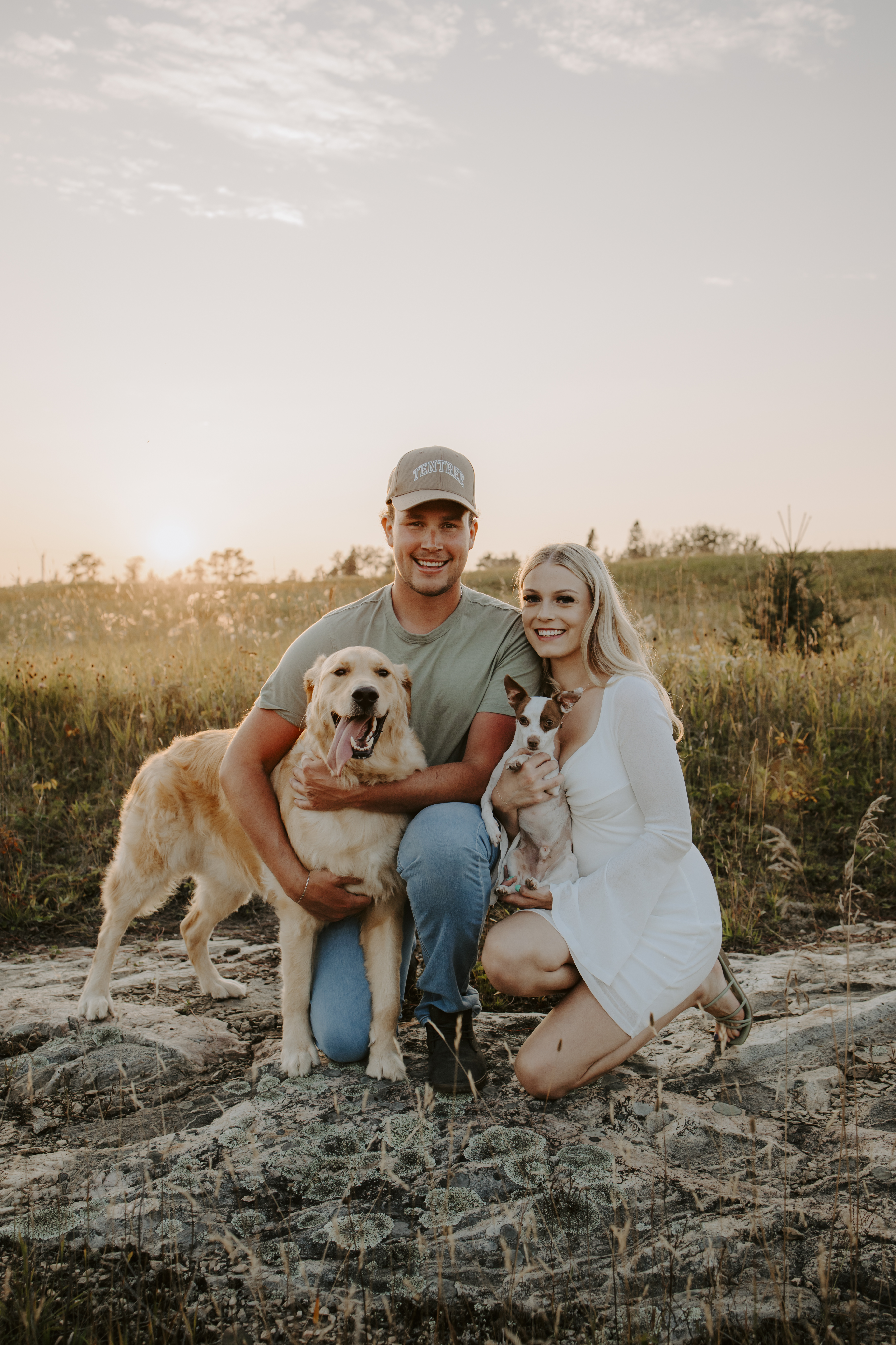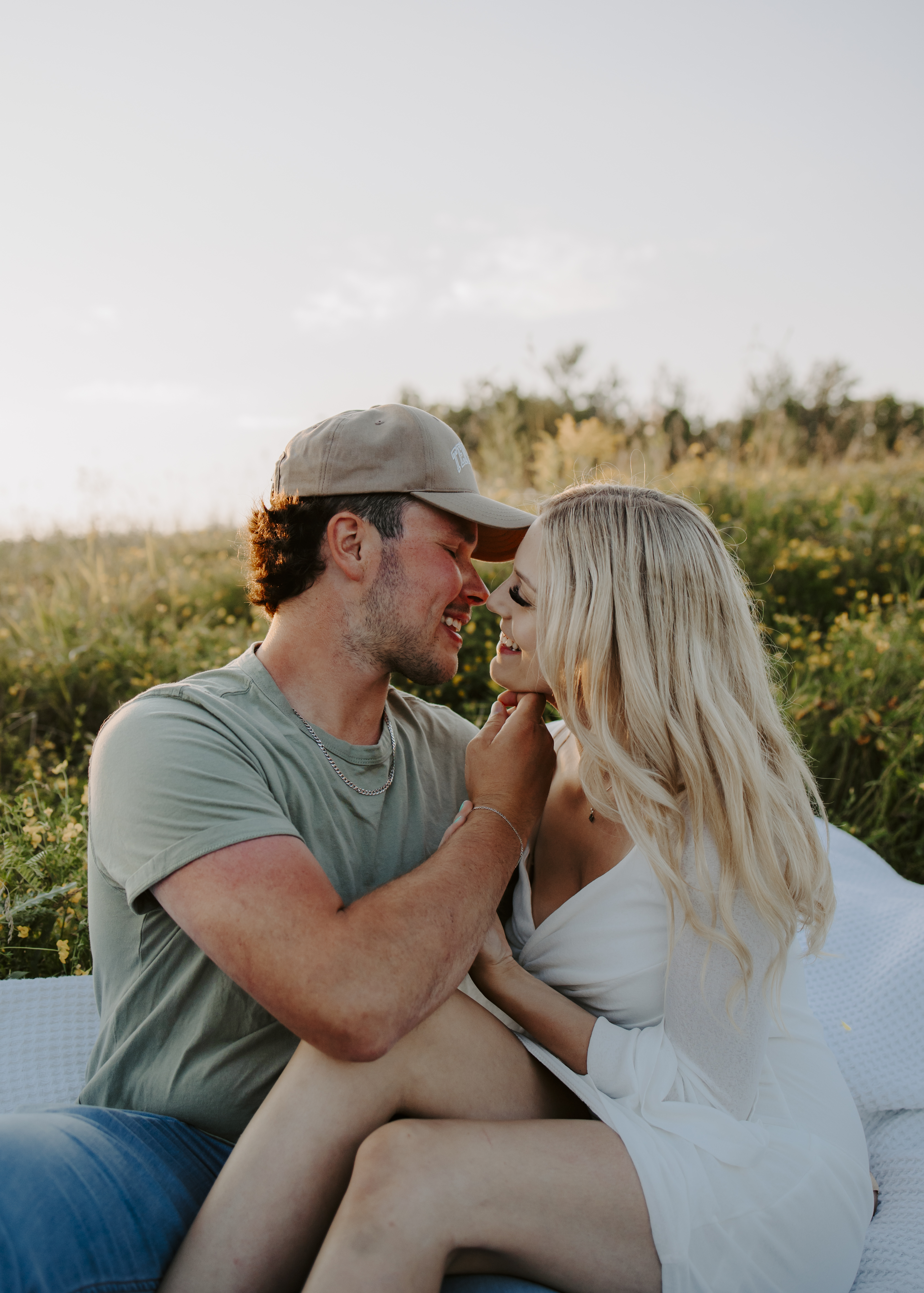 My boyfriend and I get yearly photos done and this year, I wanted our photoshoot to take place during the end of summer with our fur babies. I had chose a felid for the location of our shoot. The poses below would work for any season and in almost any location. We had brought two props with us-a $10.00 bunch of flowers and a $30.00 blanket we already had bought from Amazon. Depending the time of year/the location you’re planning on doing your shoot, have fun exploring different props that you can incorporate into your special shoot!
