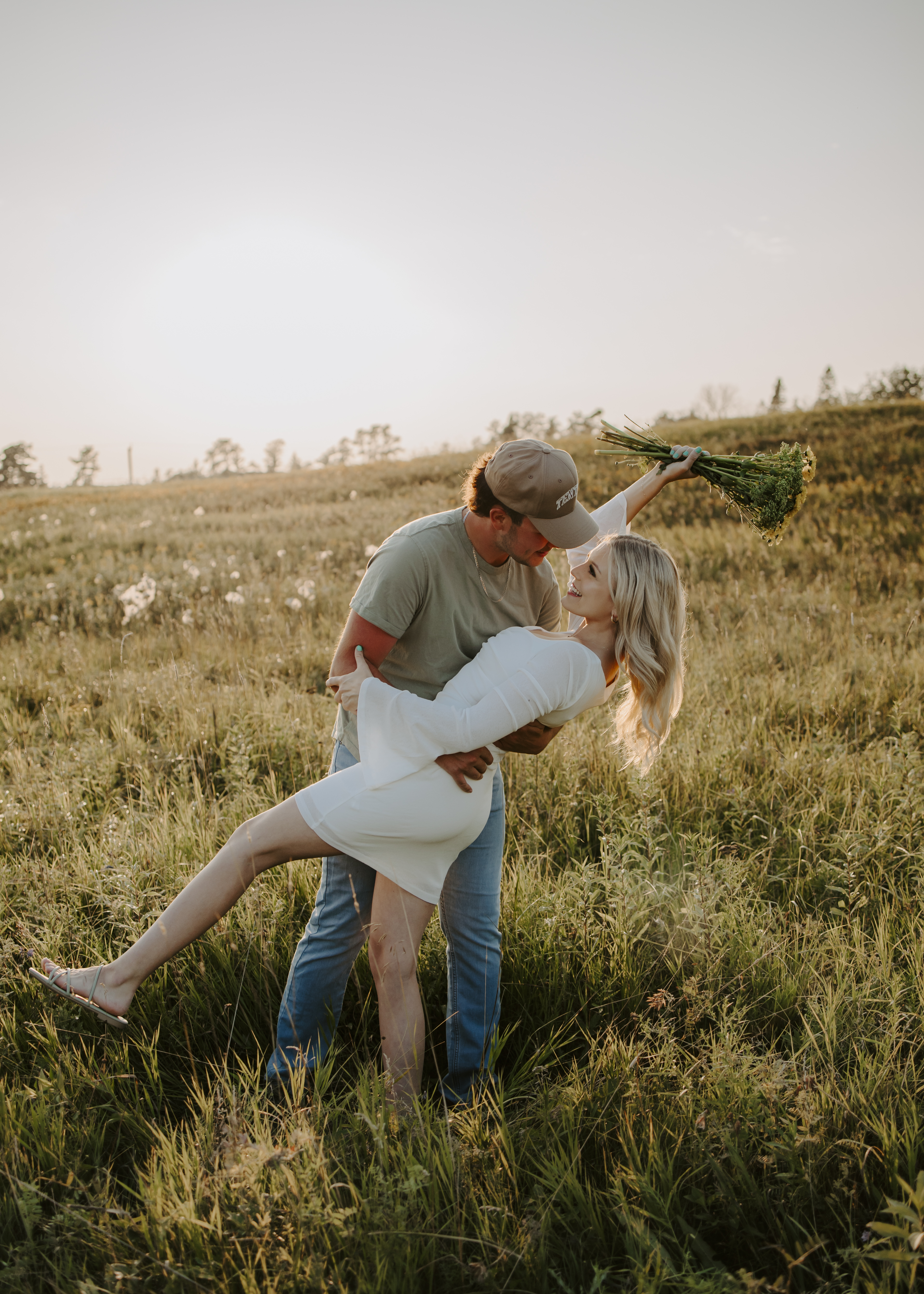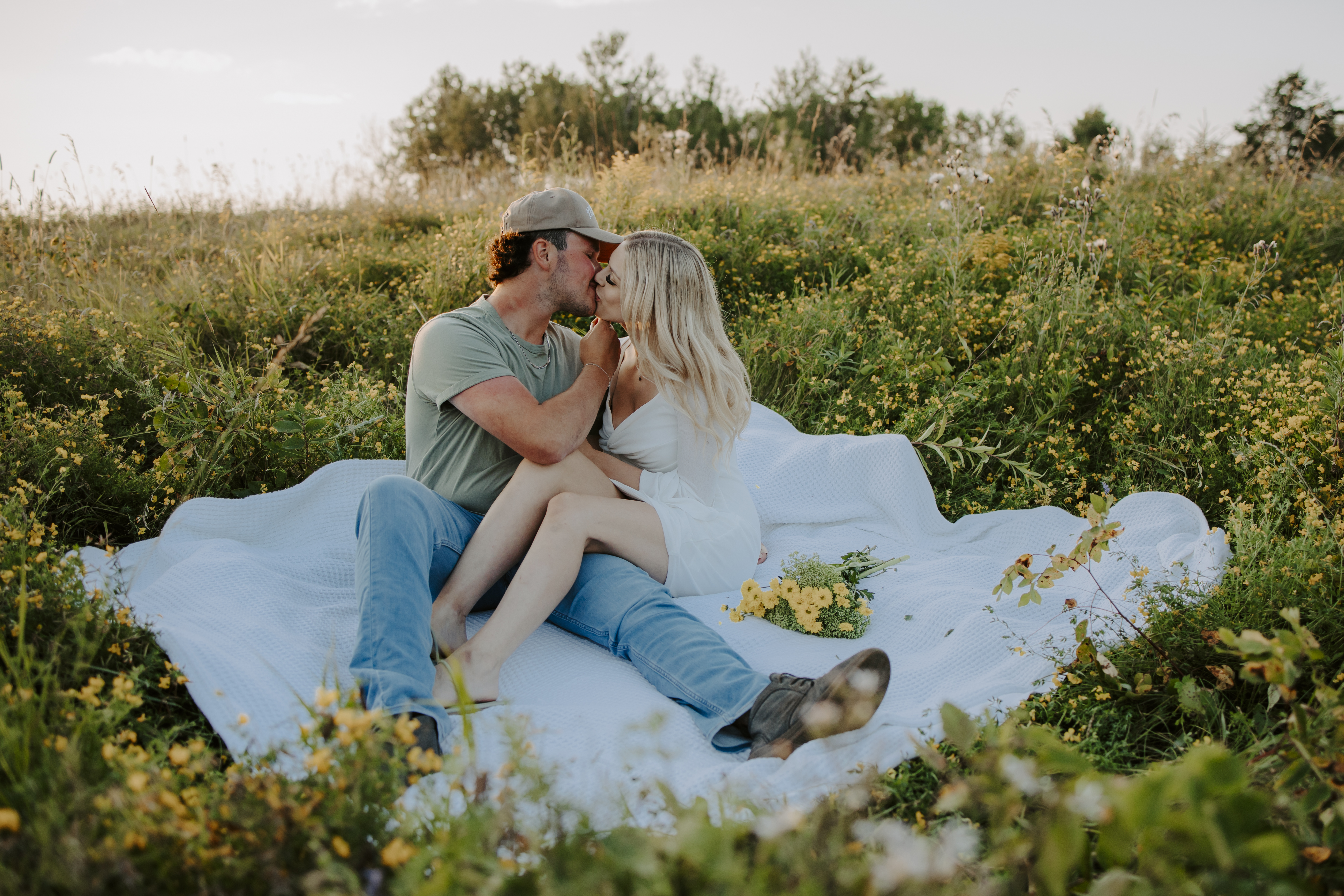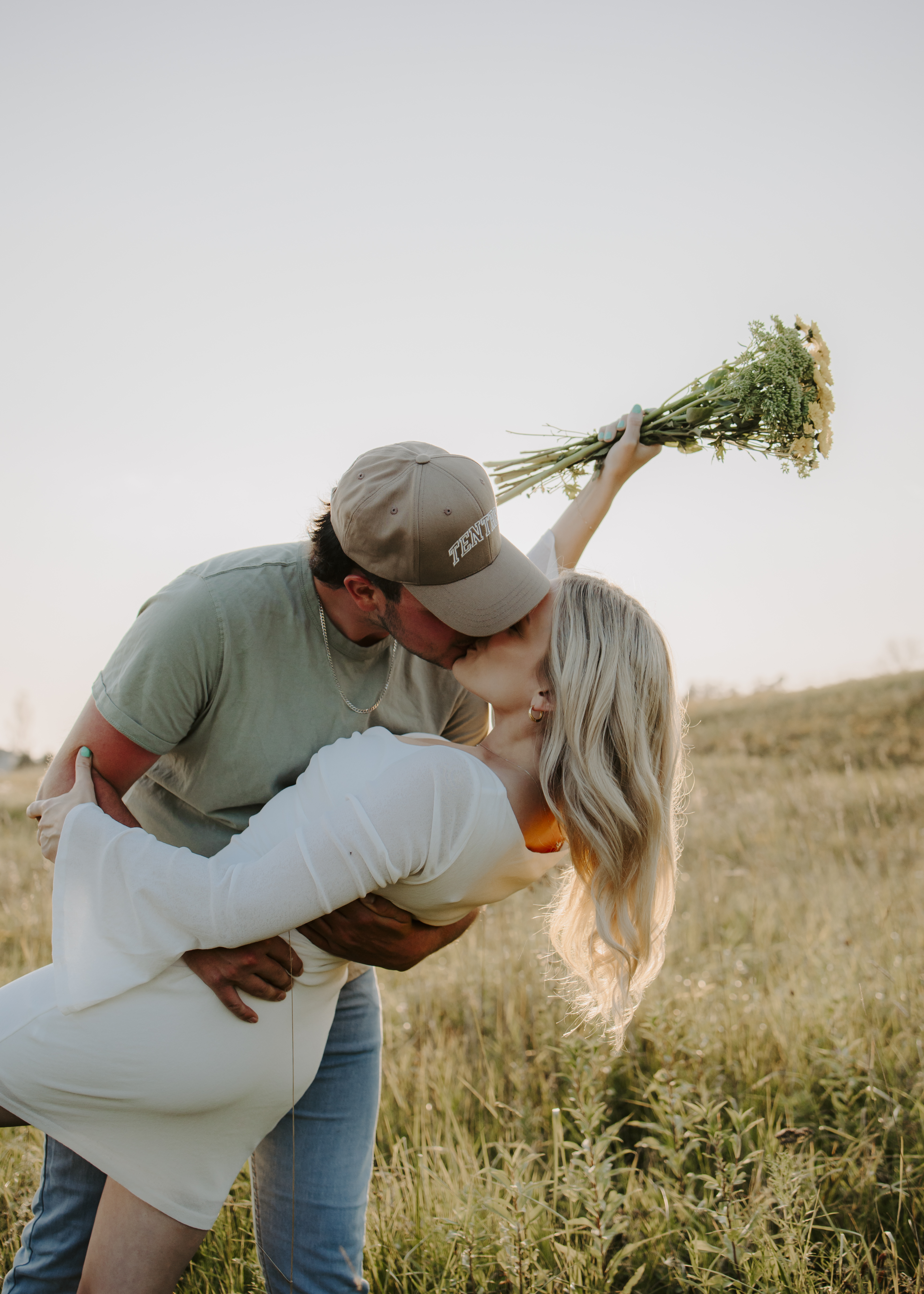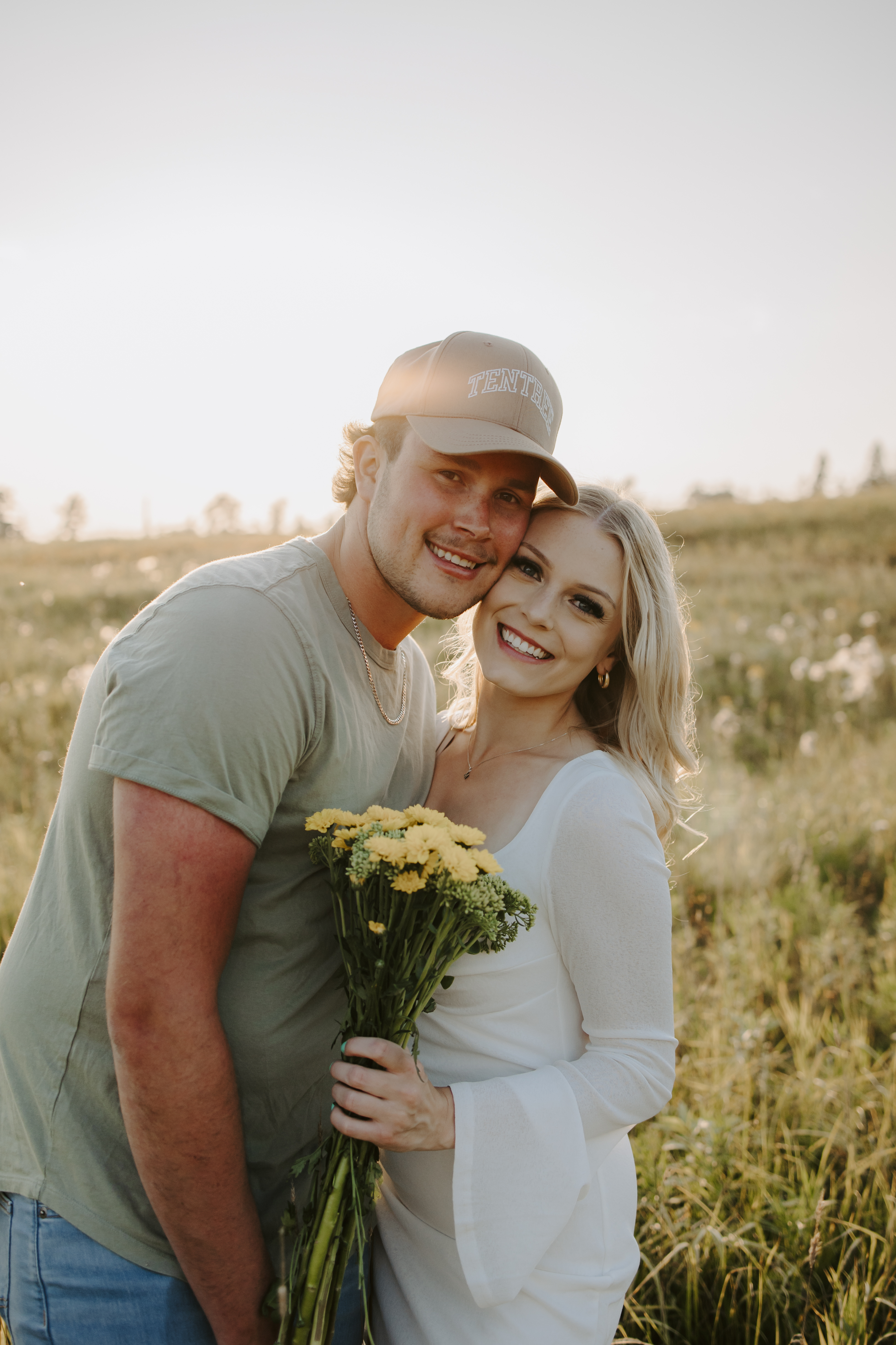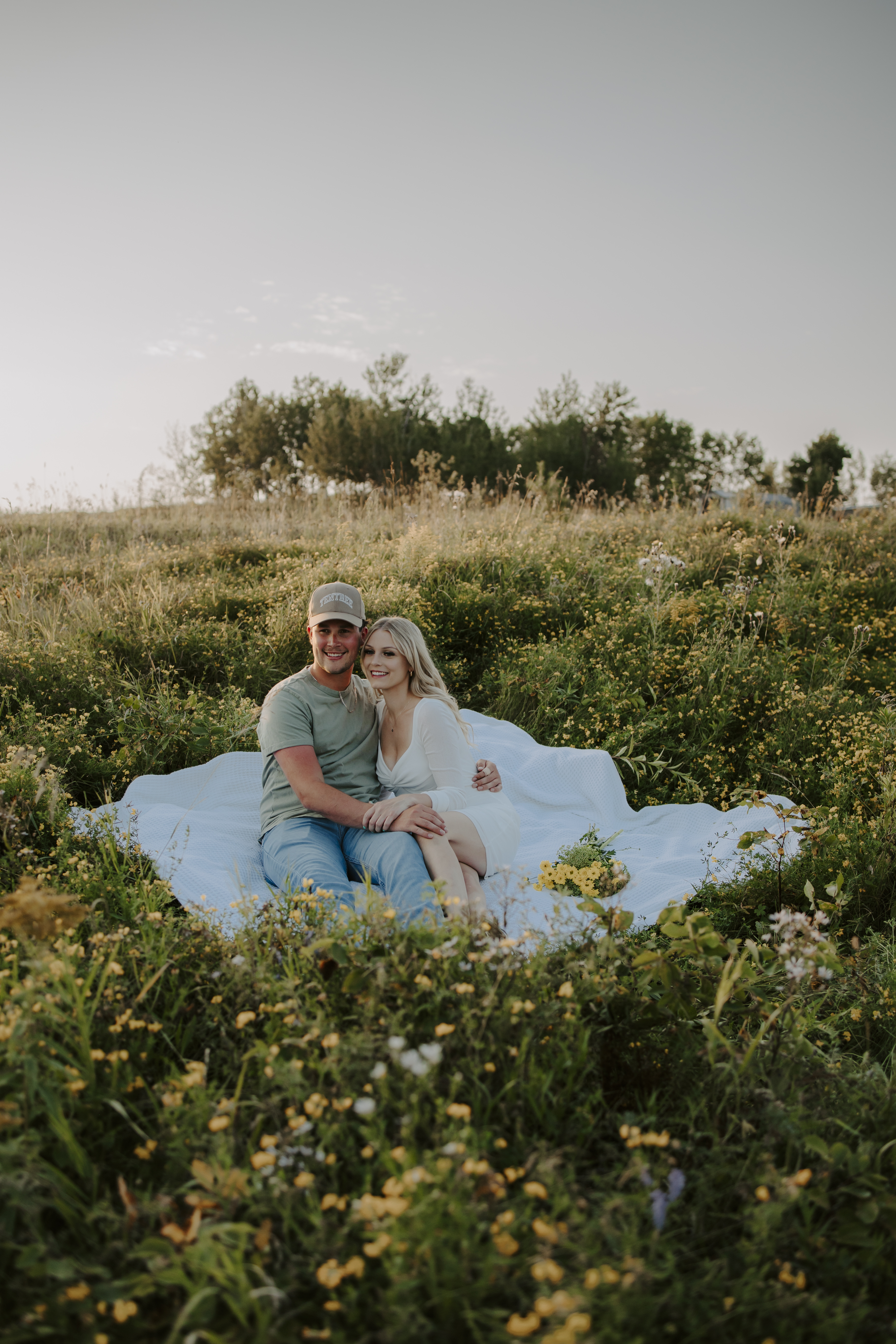 My boyfriend and I get yearly photos done and this year, I wanted our photoshoot to take place during the end of summer with our fur babies. I had chose a felid for the location of our shoot. The poses below would work for any season and in almost any location. We had brought two props with us-a $10.00 bunch of flowers and a $30.00 blanket we already had bought from Amazon. Depending the time of year/the location you’re planning on doing your shoot, have fun exploring different props that you can incorporate into your special shoot!