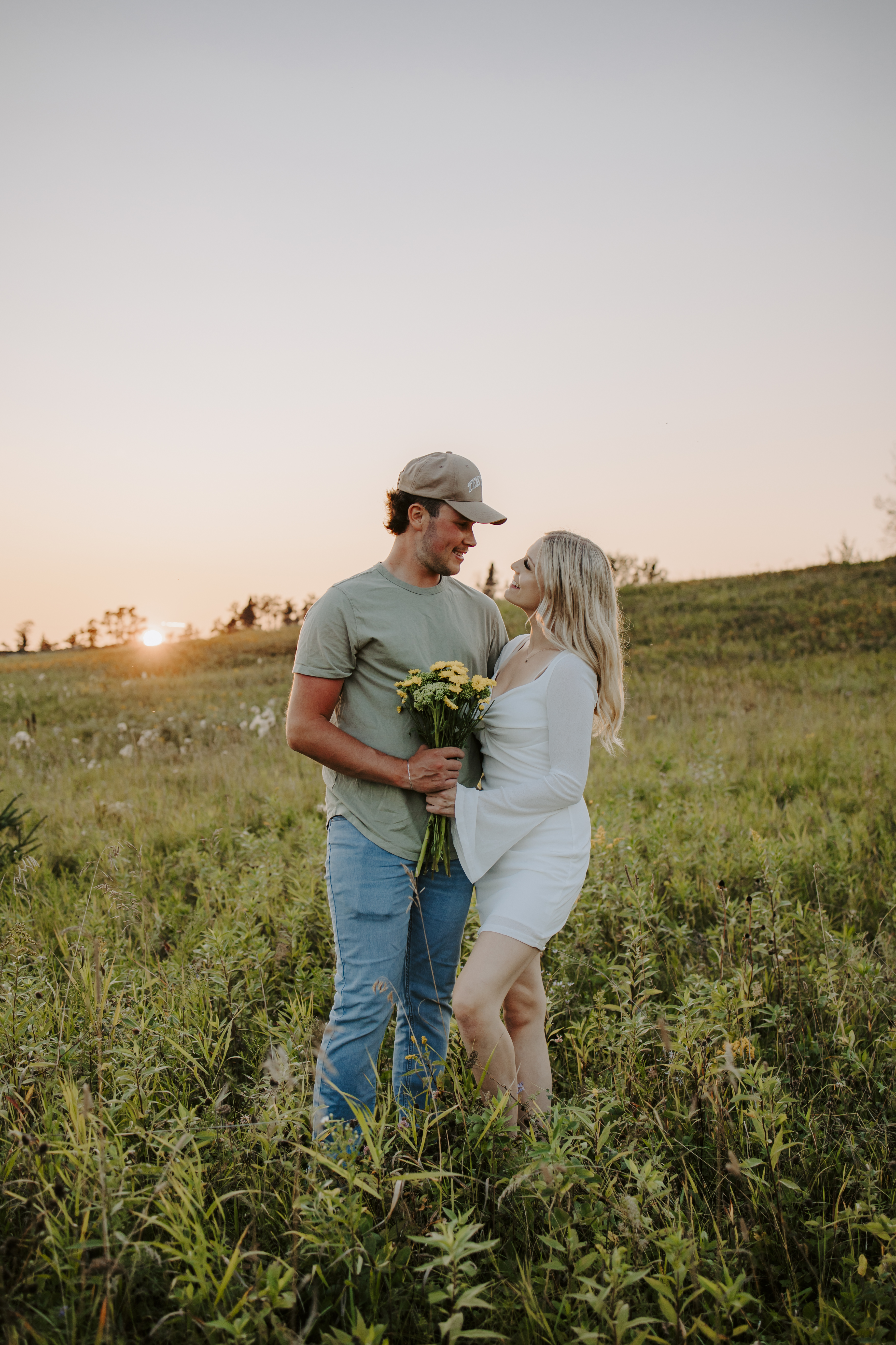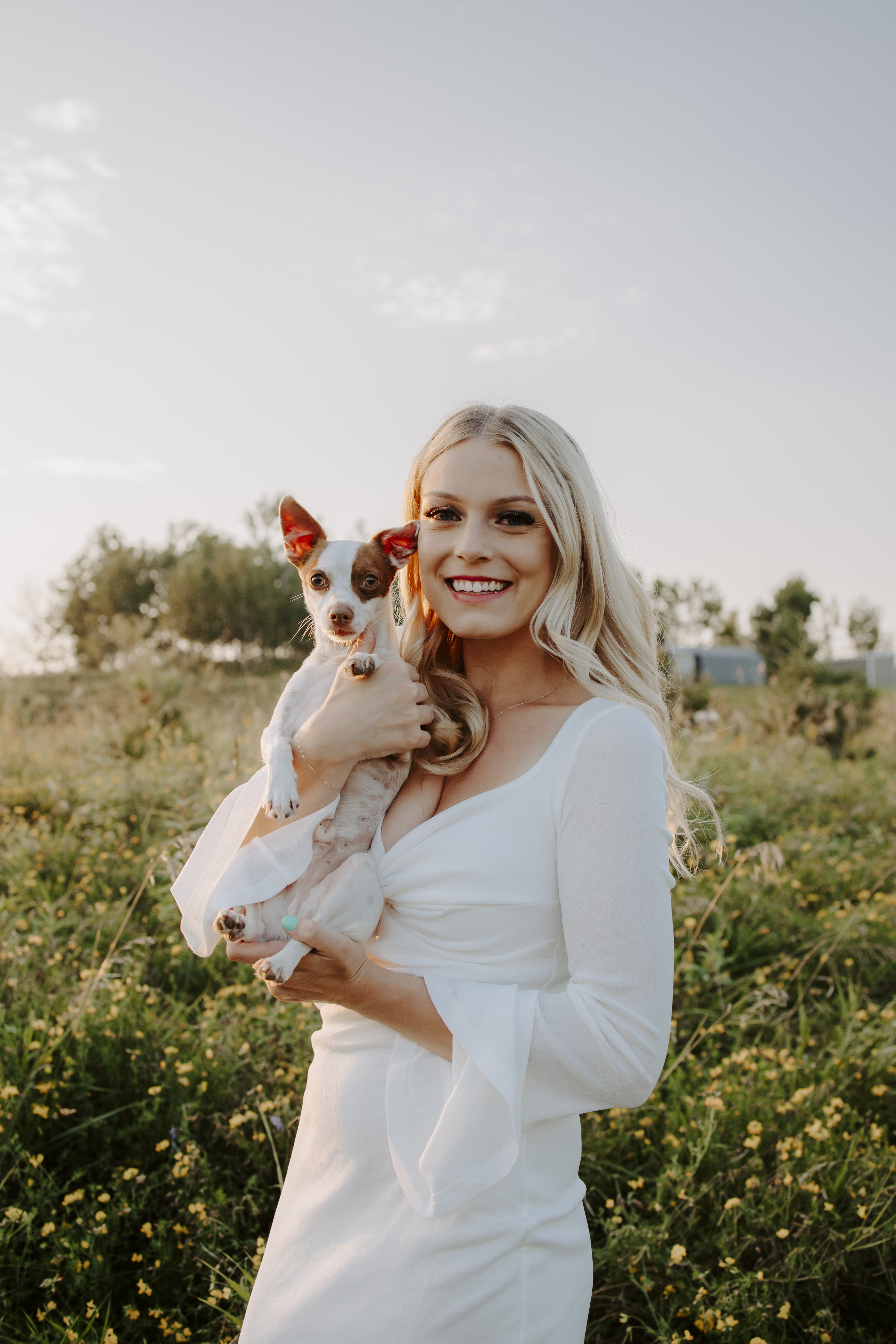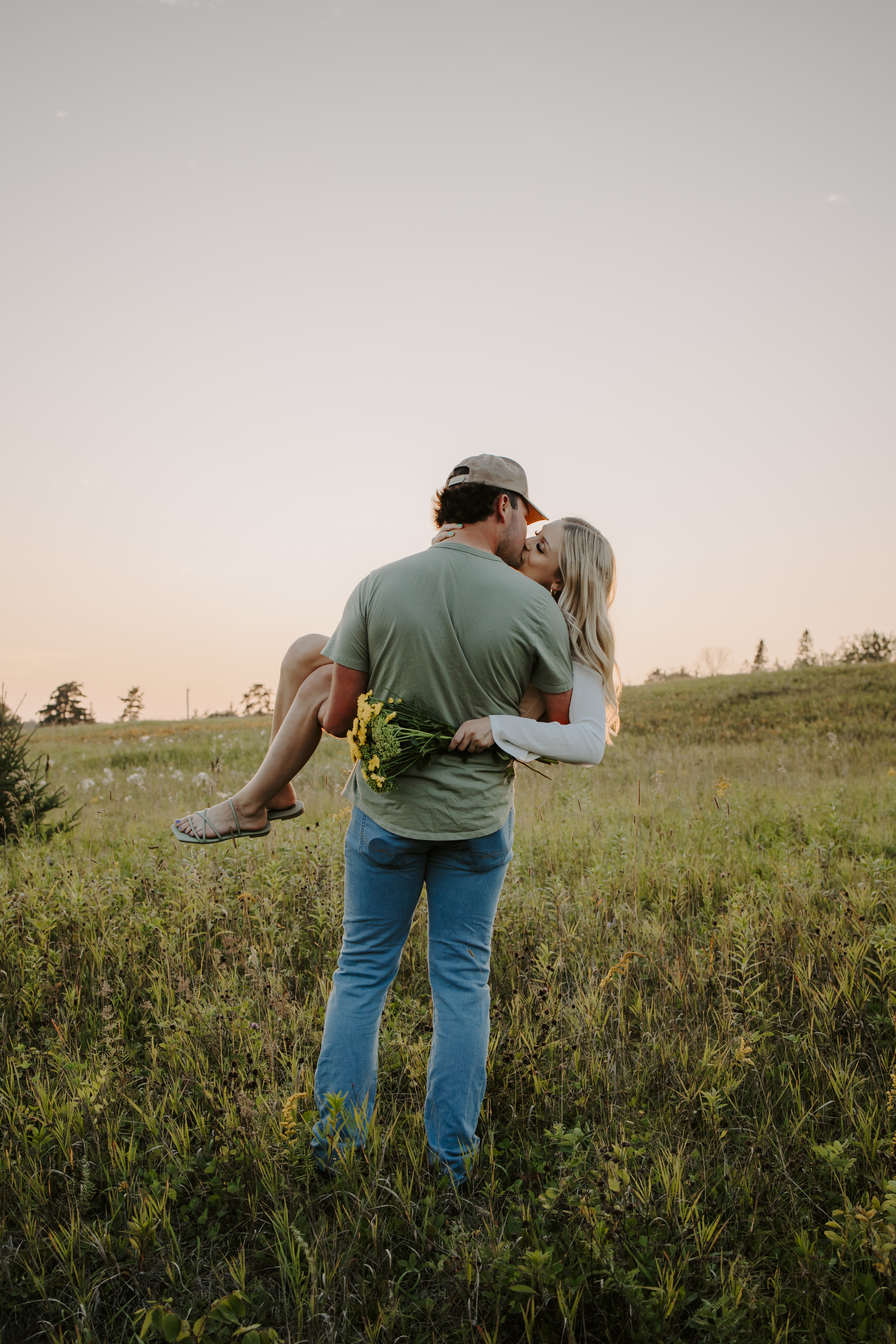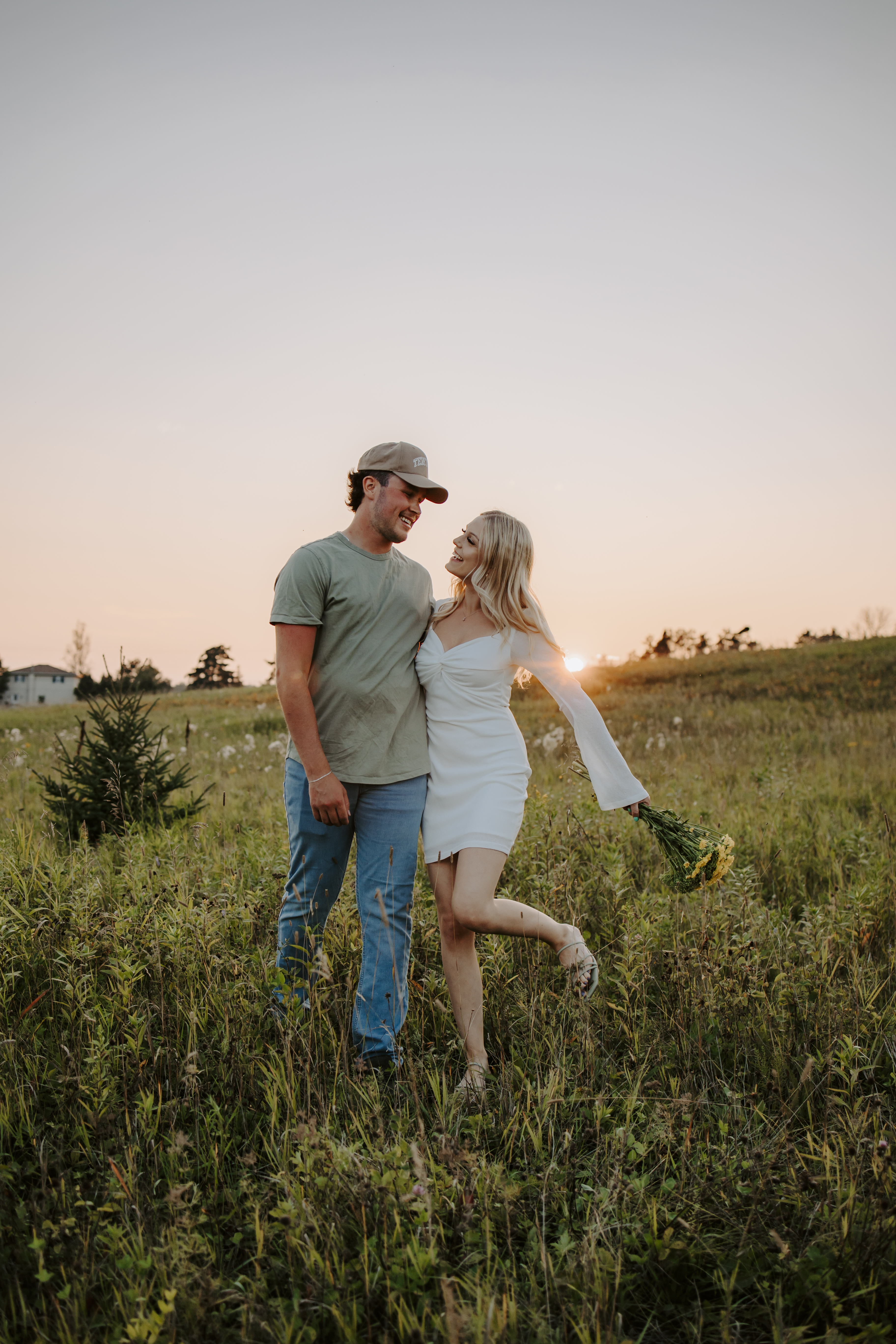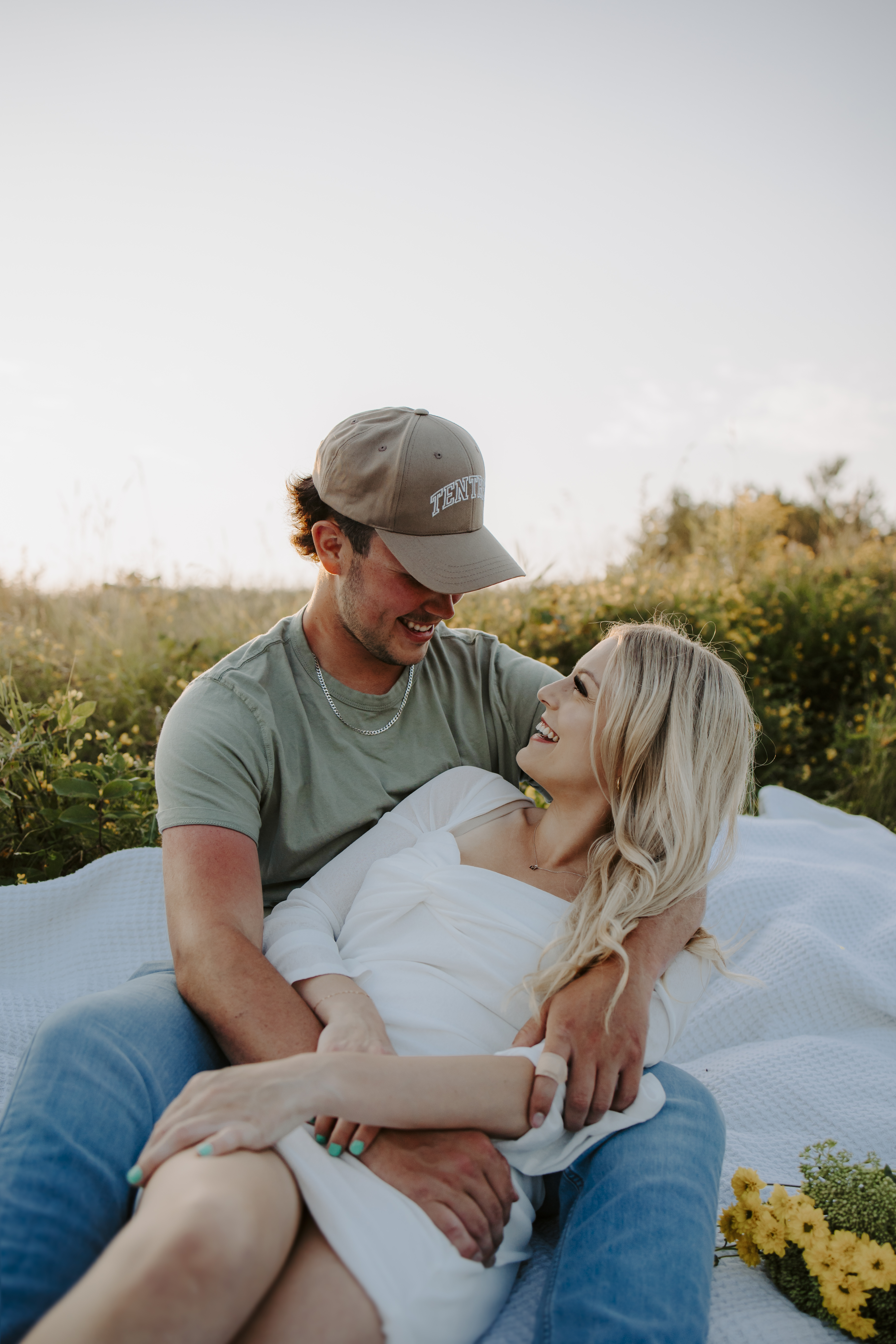 My boyfriend and I get yearly photos done and this year, I wanted our photoshoot to take place during the end of summer with our fur babies. I had chose a felid for the location of our shoot. The poses below would work for any season and in almost any location. We had brought two props with us-a $10.00 bunch of flowers and a $30.00 blanket we already had bought from Amazon. Depending the time of year/the location you’re planning on doing your shoot, have fun exploring different props that you can incorporate into your special shoot!