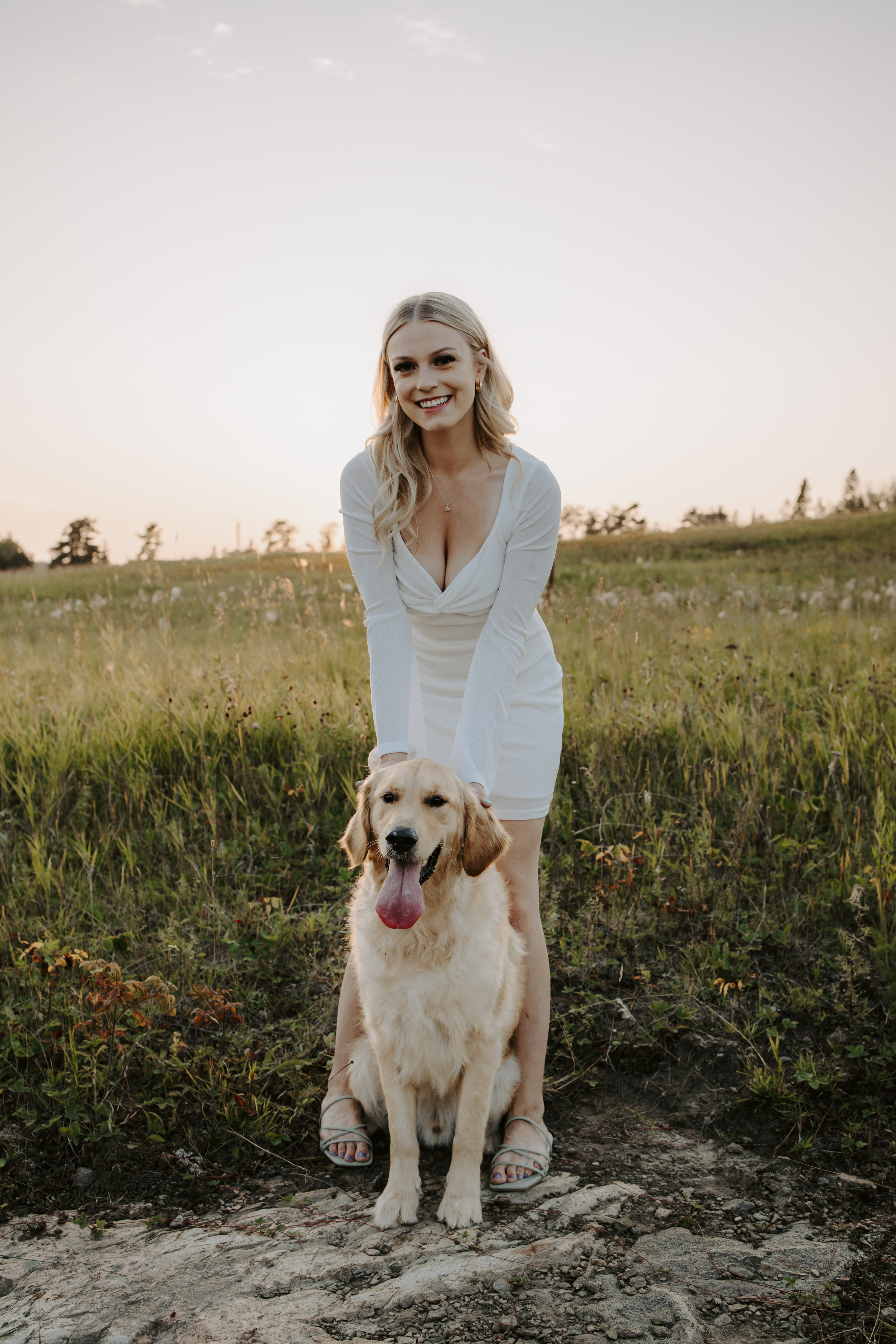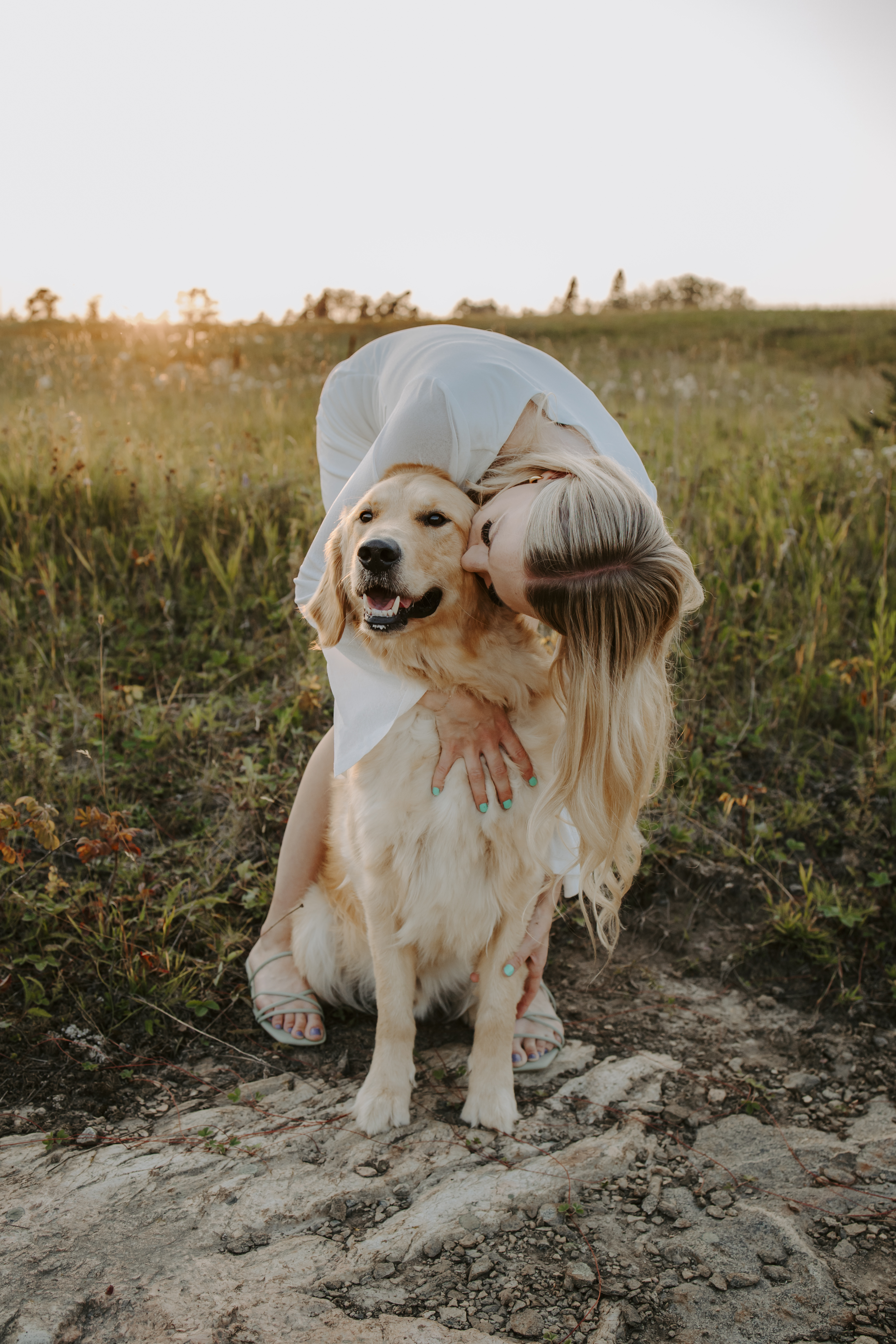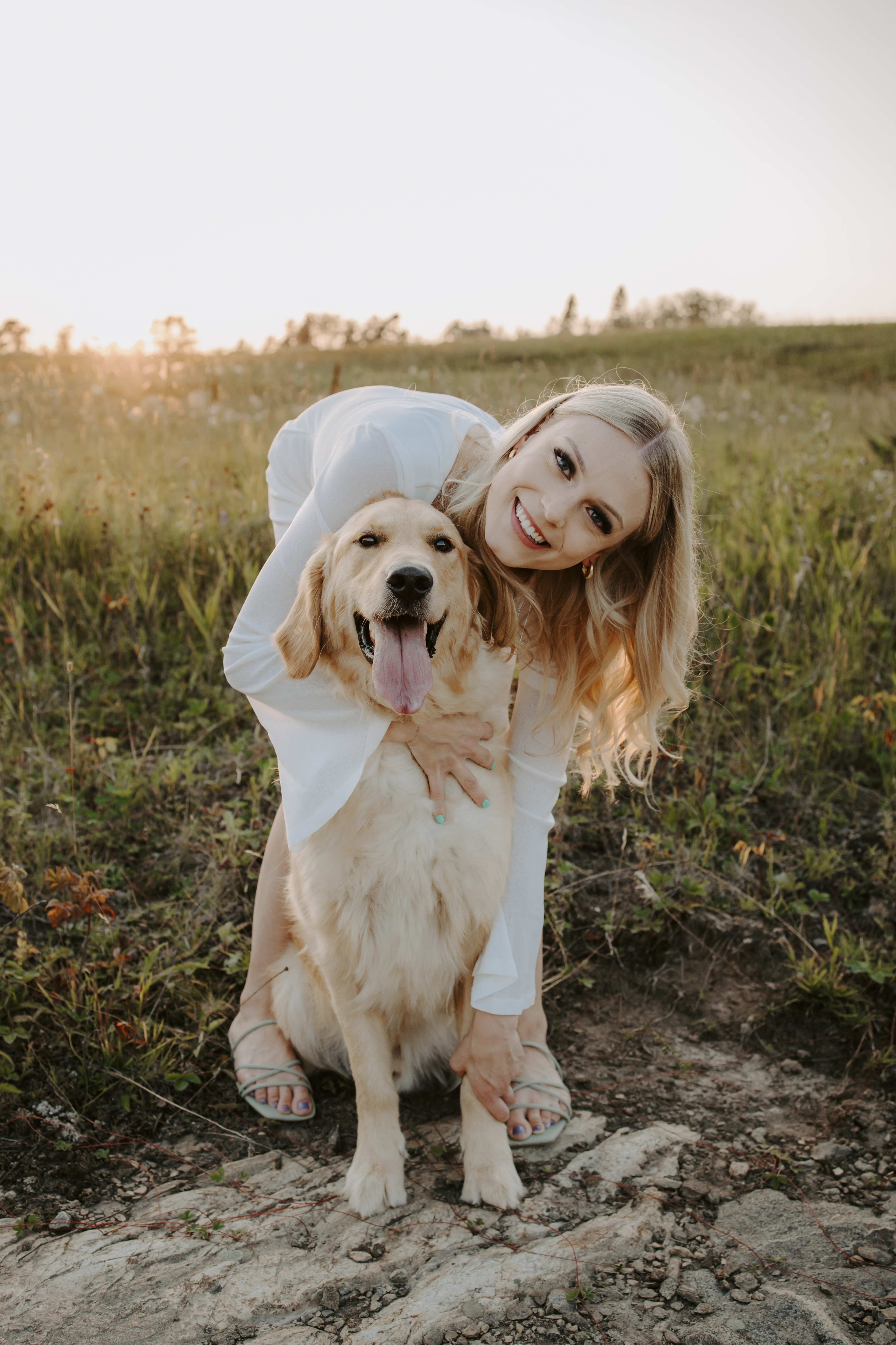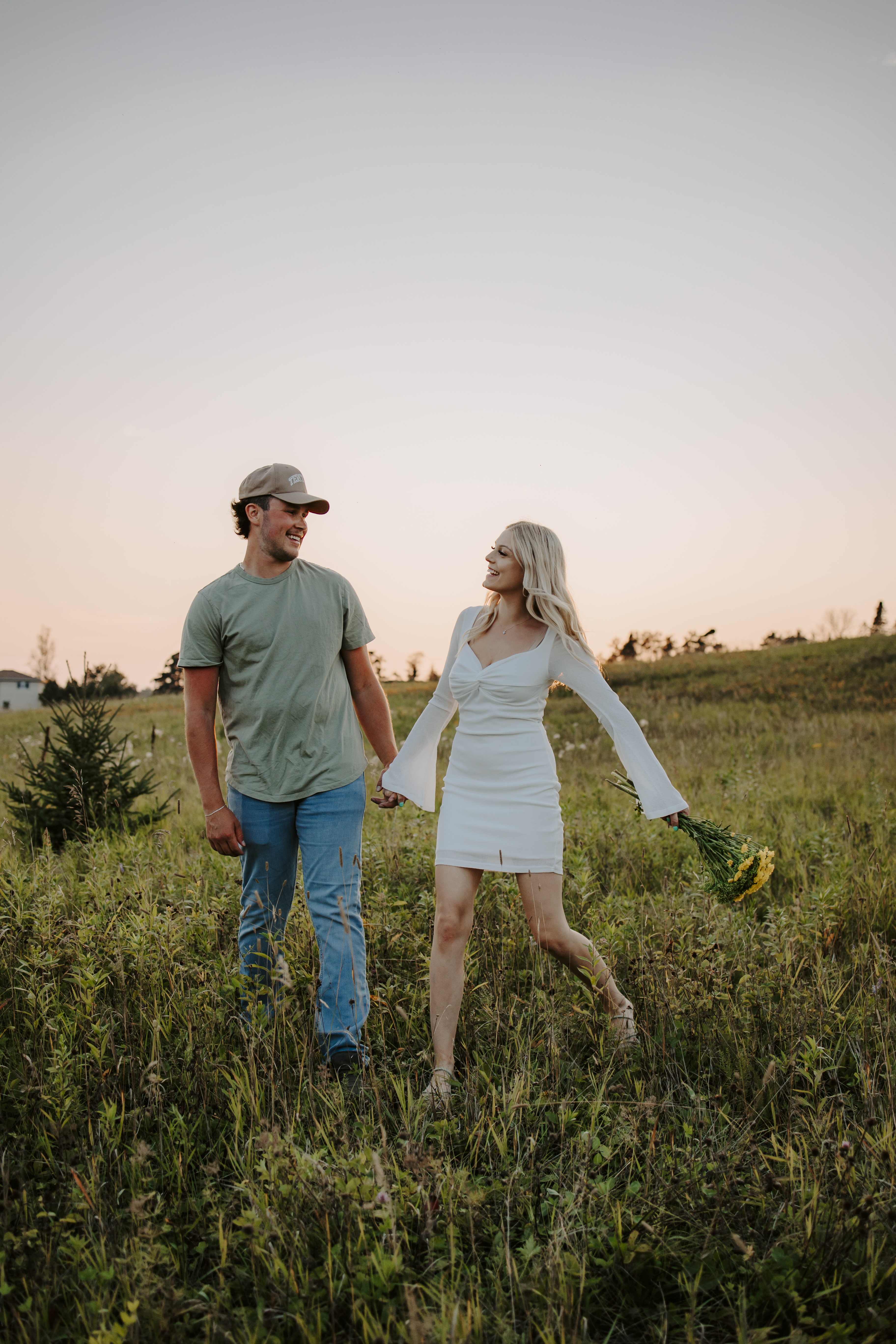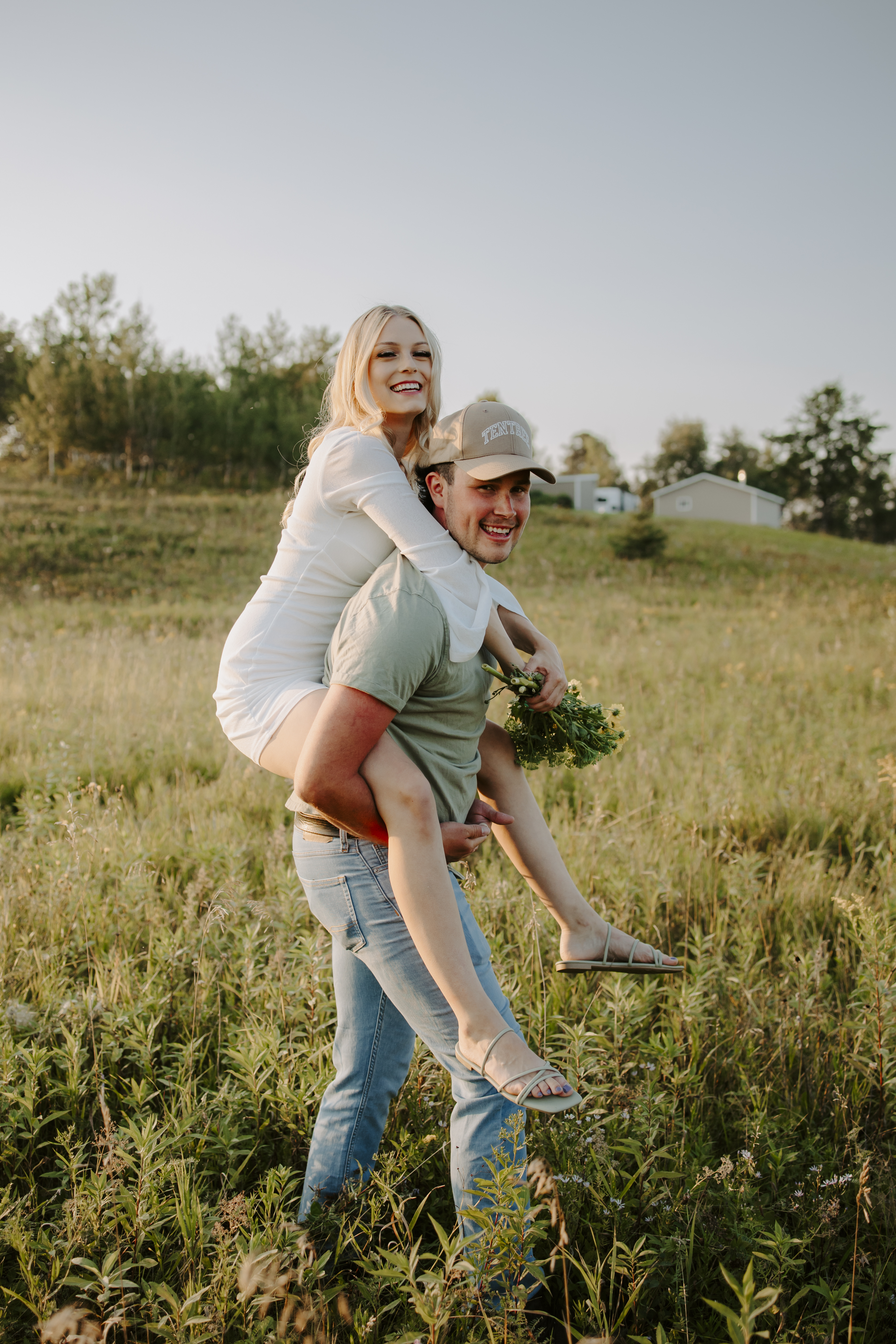 My boyfriend and I get yearly photos done and this year, I wanted our photoshoot to take place during the end of summer with our fur babies. I had chose a felid for the location of our shoot. The poses below would work for any season and in almost any location. We had brought two props with us-a $10.00 bunch of flowers and a $30.00 blanket we already had bought from Amazon. Depending the time of year/the location you’re planning on doing your shoot, have fun exploring different props that you can incorporate into your special shoot!