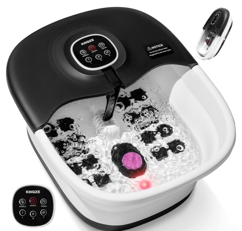 This multi-functional feet soaking tub integrates heating, bubbles, vibrations,massage rollers, pumice stone, and red light functions to relax your feet by gently massaging and soothing your tired feet. It also equipped with a medicine box that can put herb bag to help care your feet.