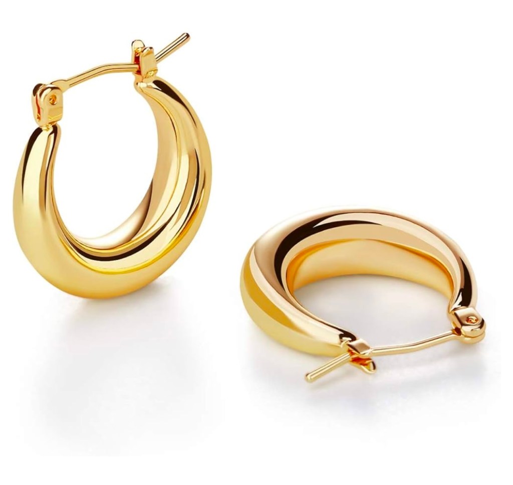 Her jewelry is minimal, often consisting of gold or silver hoops, dainty necklaces, and simple rings that complement her effortless style.