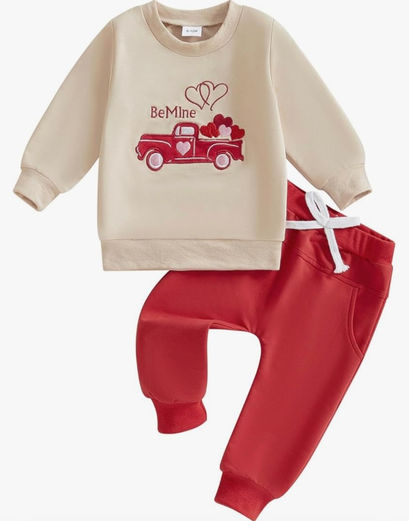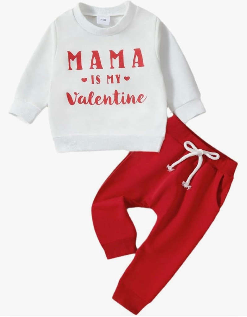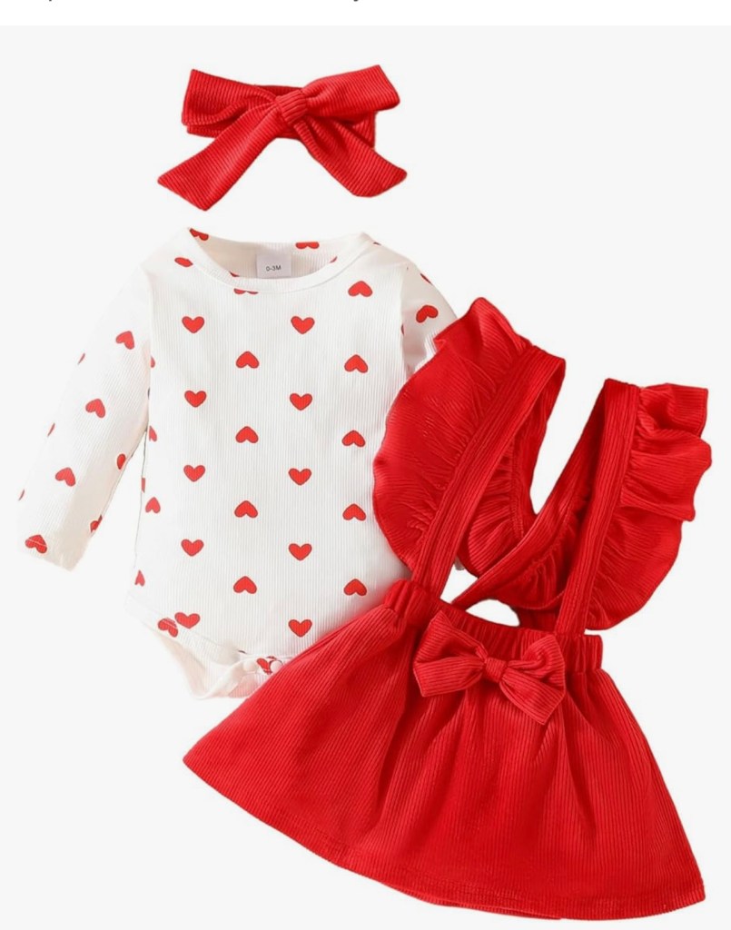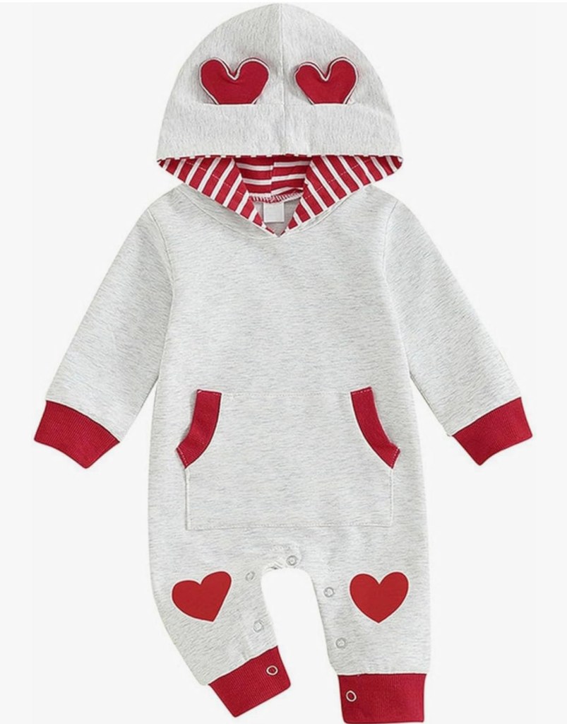 Below I have listed some Valentines Day inspired clothing for baby/toddler girls, boys and gender neutral pieces as well! All of the clothing ranges in sizes from 0-3 months all of the way to 5T. Scroll through numerous red, pink, white and heart themed clothing for your little love. The links to each item will be attached below each photo.