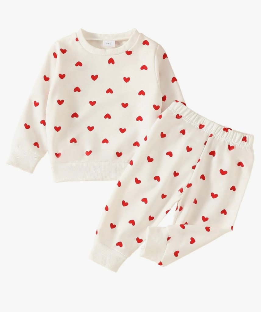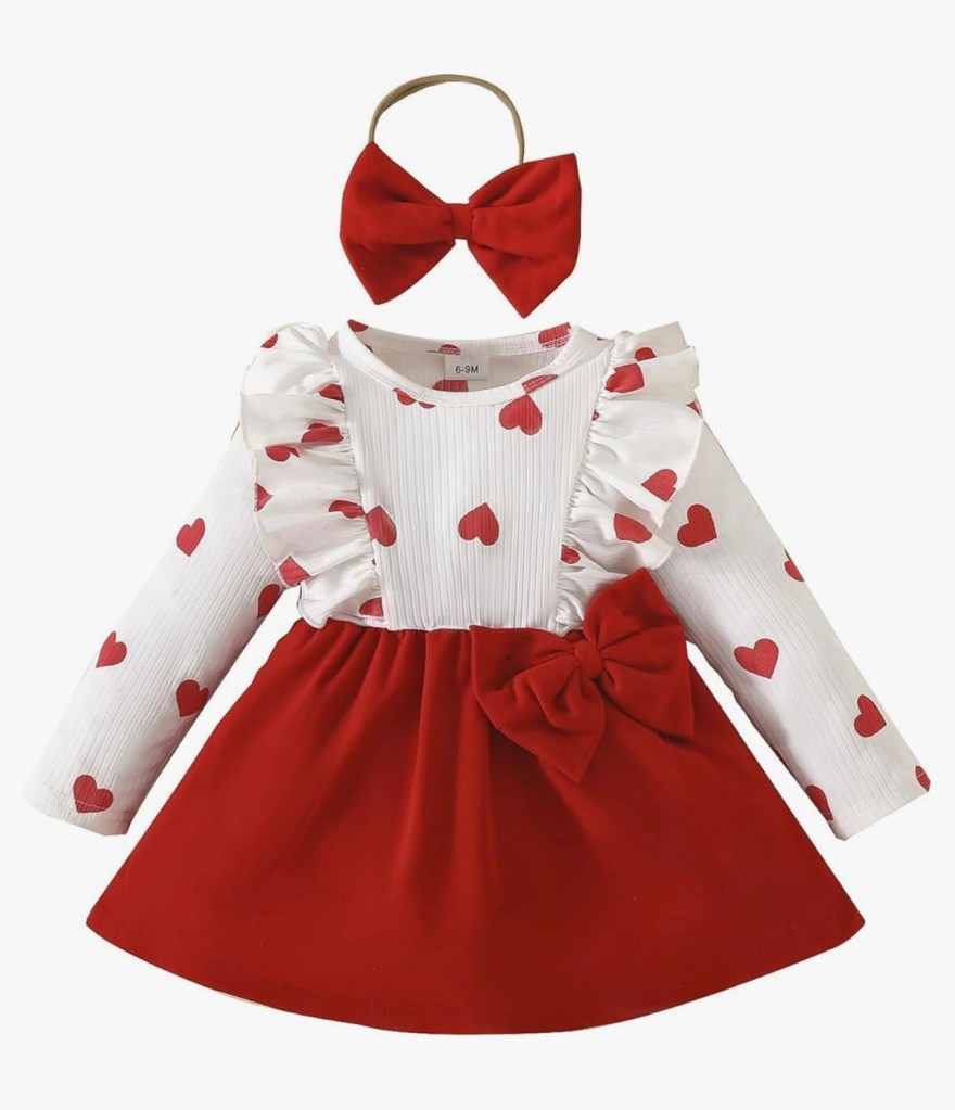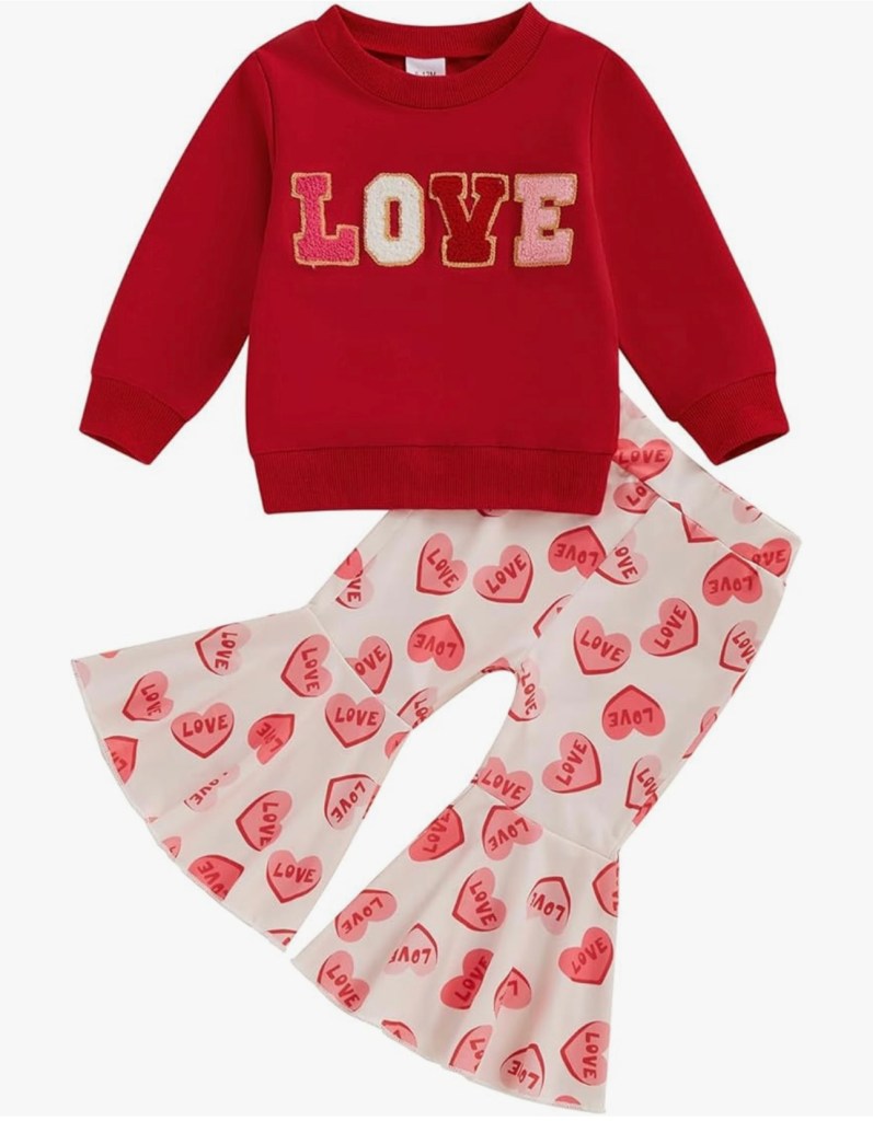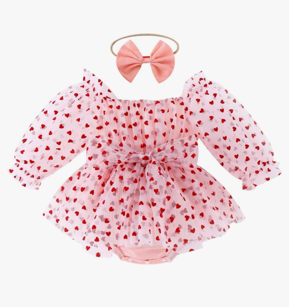 Below I have listed some Valentines Day inspired clothing for baby/toddler girls, boys and gender neutral pieces as well! All of the clothing ranges in sizes from 0-3 months all of the way to 5T. Scroll through numerous red, pink, white and heart themed clothing for your little love. The links to each item will be attached below each photo.