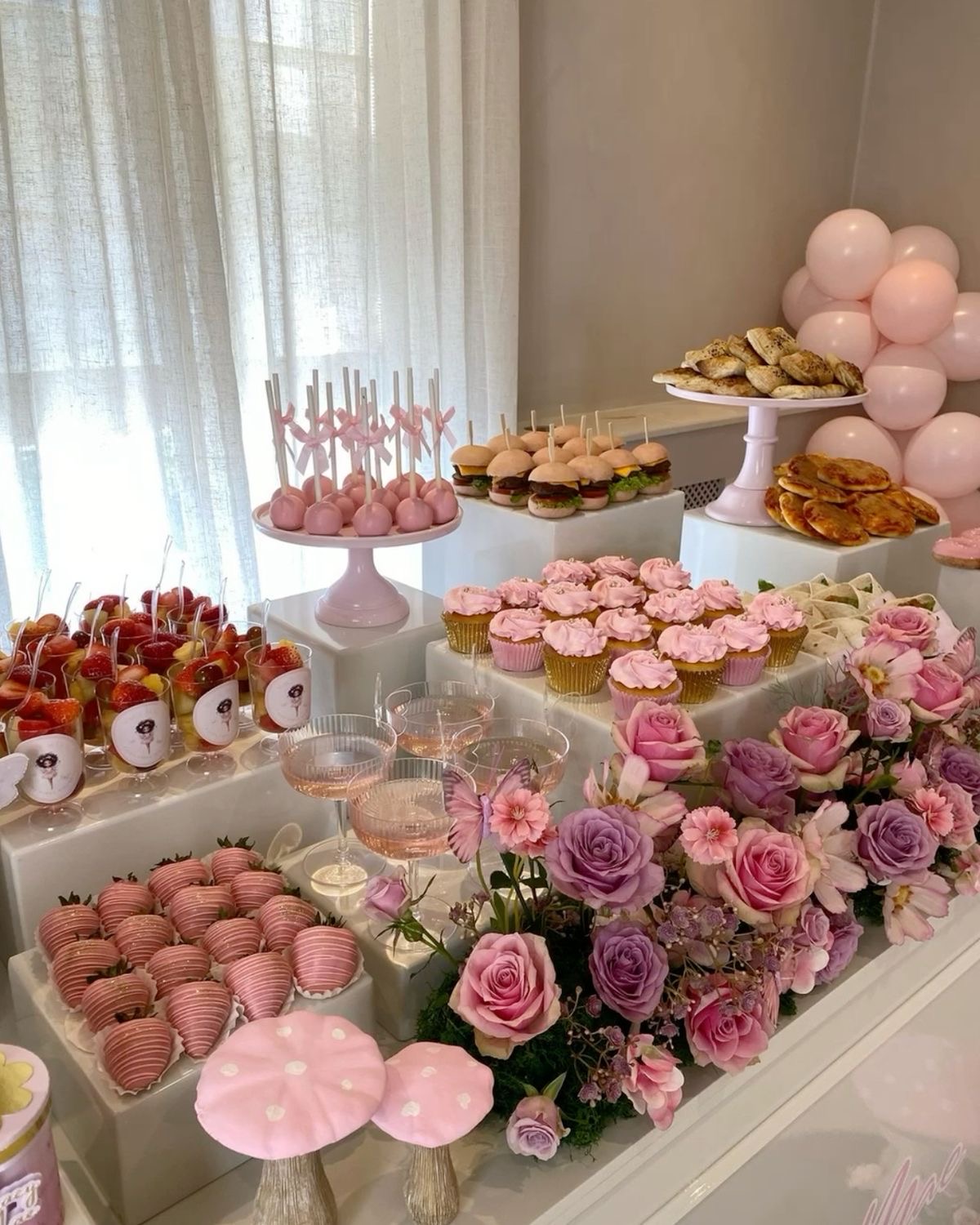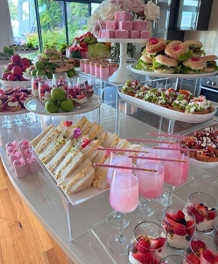 Food is always the star of any good party! Whether you go for a full-on brunch spread, appetizers, or a DIY dessert table, keep things easy to eat, fun, and shareable. Here are some ideas to get you started: