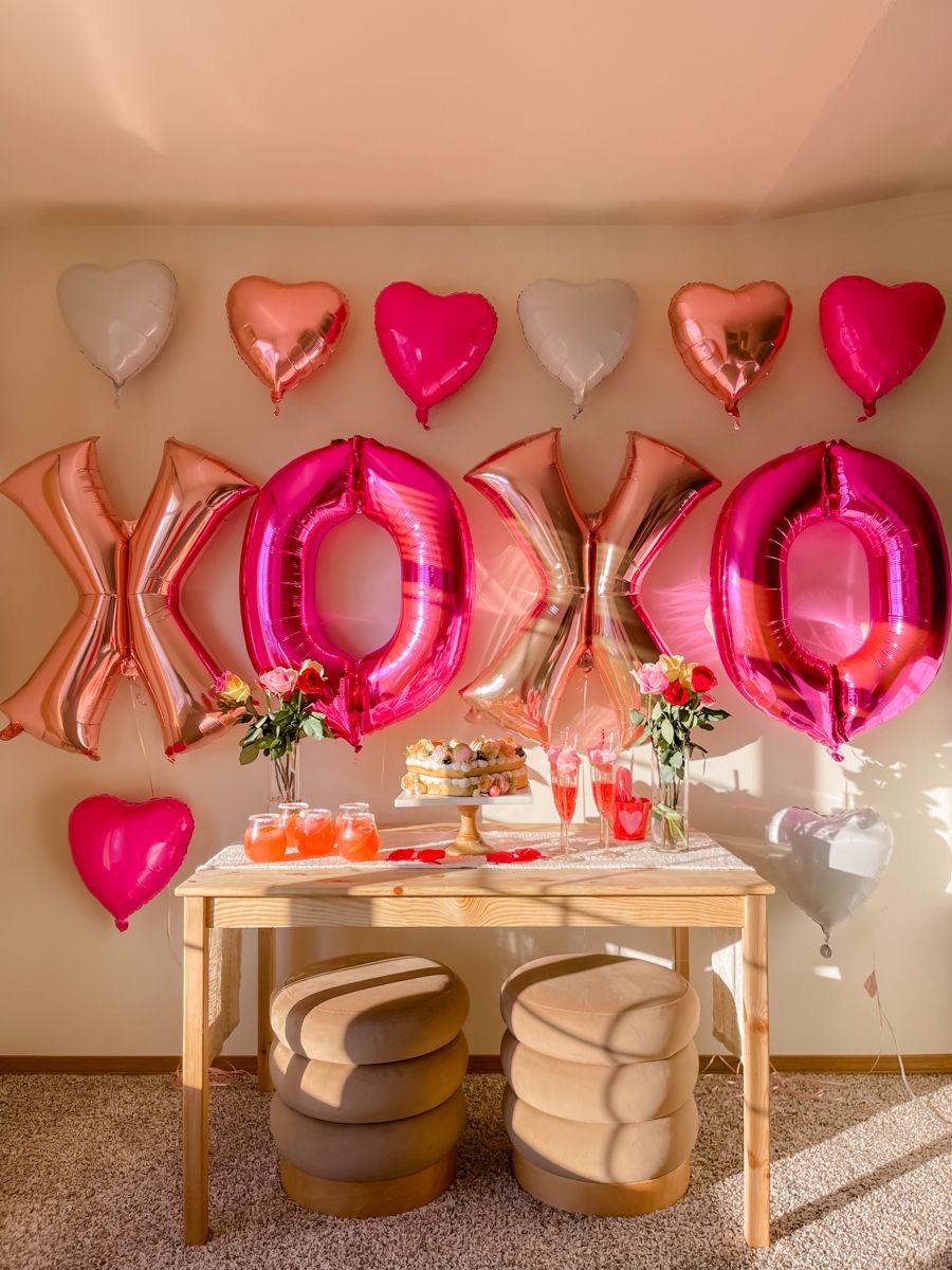 The best part of Galentine’s Day is the decor—so get creative! For a simple yet stylish approach, decorate with heart-shaped balloons, pastel-colored streamers, fresh flowers, and candles. Incorporate elements of your theme, whether it’s feminine, vintage, or quirky. A few ideas:
