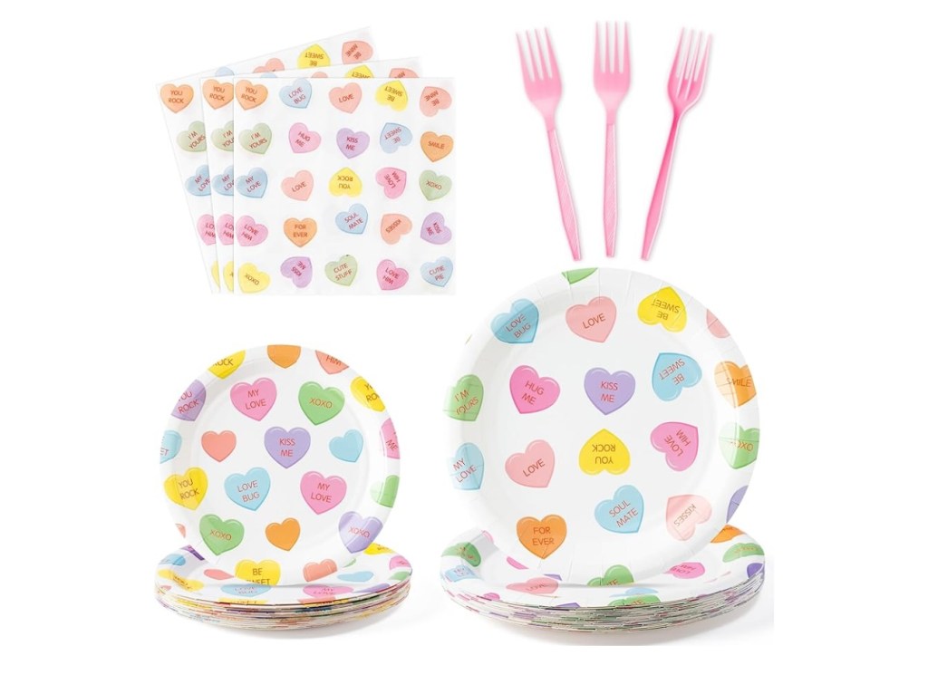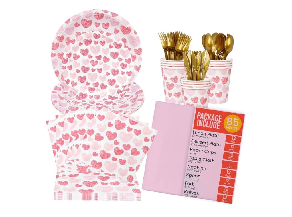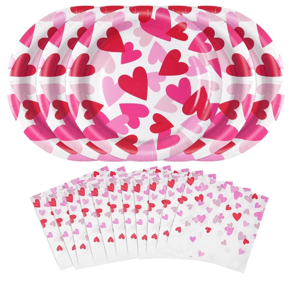 Another important category when planning your party. There are ton’s of adorable heart shaped serving dishes, cups, table runners etc. I have linked below my top favourites you can purchase off of Amazon. You can get creative with your theme and presentation with all of the items below. One of my favourite items is the heart shaped charcuterie board which you could place fun pink, red and white coloured candies or food inside!