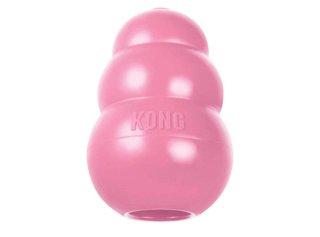 This tough toy made by kong made of soft rubber for puppies that make a great teething aid. You can also stuff the middle of the toy with a little bit of peanut butter for a tasty snack. My dogs loved this one! It come’s in this pink colour as well as a light blue.