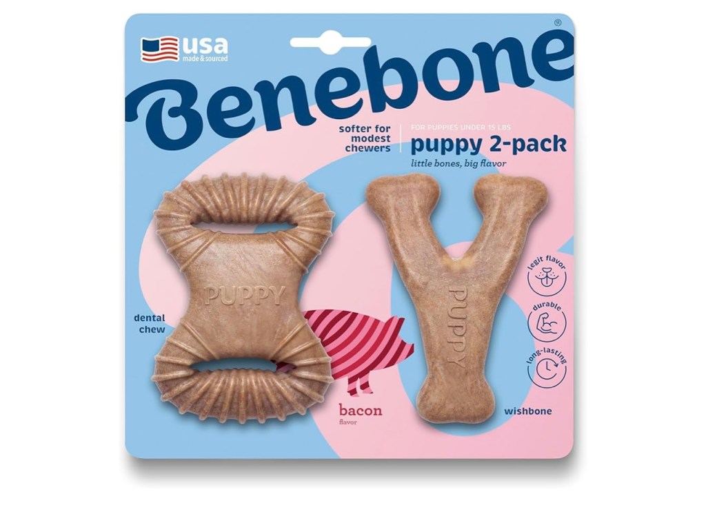 Benebone’s are my dogs favourite toy. They come in all sizes from puppy-extra large. There are different flavours you can chose to your dogs liking. They are long lasting, paw friendly, durable and Dom not contain rawhide! This would be a great option of toy for you teething puppy.
