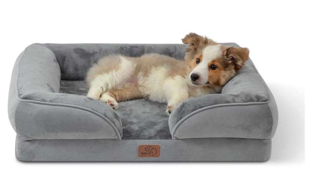 A puppy’s dog bed does not have to be elaborate either. As long as they have a soft and comfy place to lay, they should be ok! My Chihuahua favoured the donut shaped bed over the rectangle one. I think he enjoys feeling all four corners of the bed around him. My Golden Retriever currently has the rectangle shaped bed below on the left side in the size large. It is orthopedic and has a comfortable foam insert for your pup.