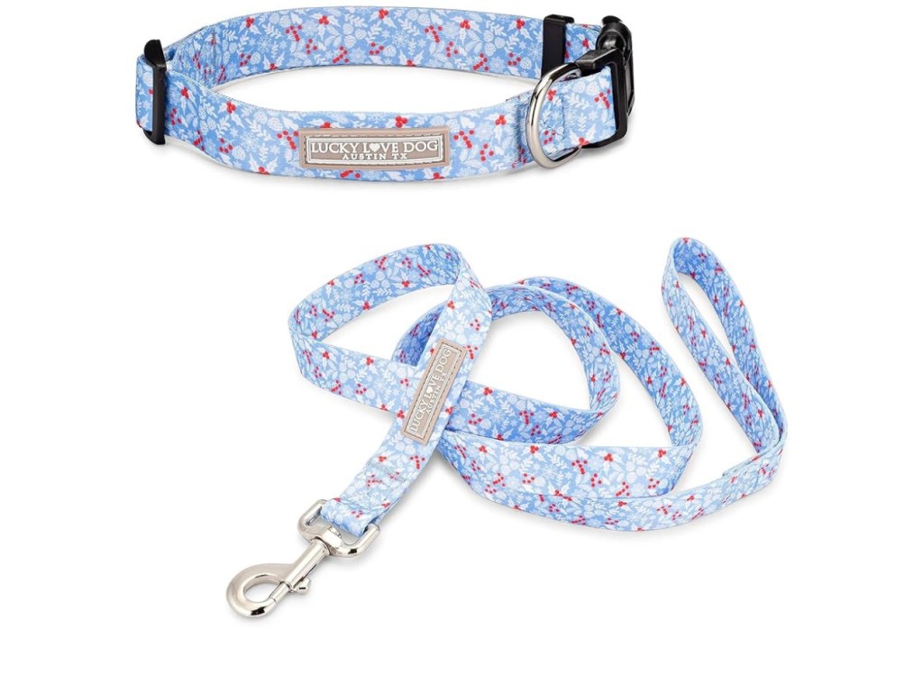 Below, I have listed both collar and leashes along with harness’ and leashes. I loved picking out the matching set for both my pups that fit their personalities. Each item below is on Amazon’s best selling list and they all come in so many cute designs and sizes!
