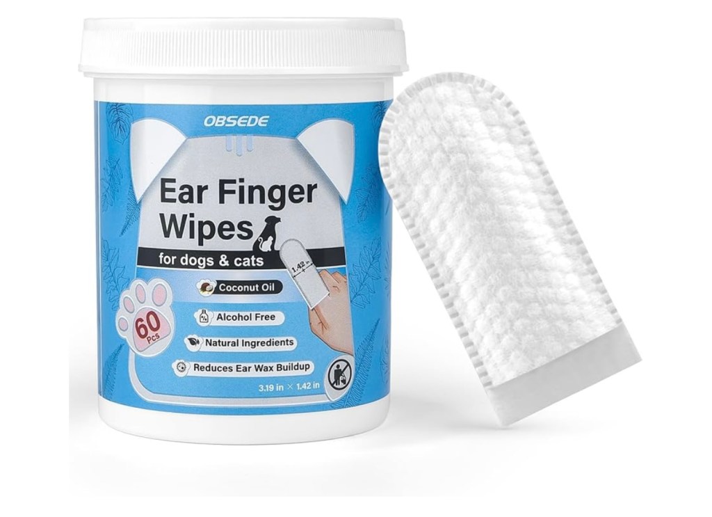 My dog’s also use this product. Your dog’s ears need to be cleaned just like yours do. These finger wipes come in a 60 pack and are coconut scented. You can also get them in different sizes depending on your dog’s ear size. The wipes reduce dirt and wax build up. I use these on my dogs about once a month or as needed!