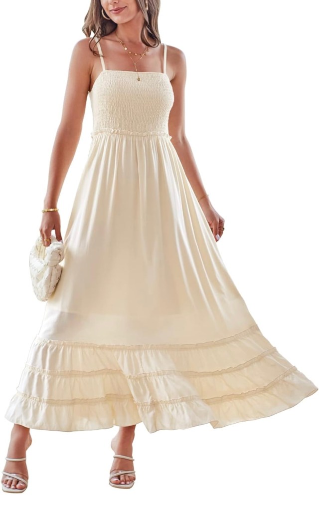 When it comes to dresses, flowy and feminine styles such as sundresses and maxi dresses are great choices. Chose neutral colors like white, beige, and light pink. Avoid bold or bright colors.